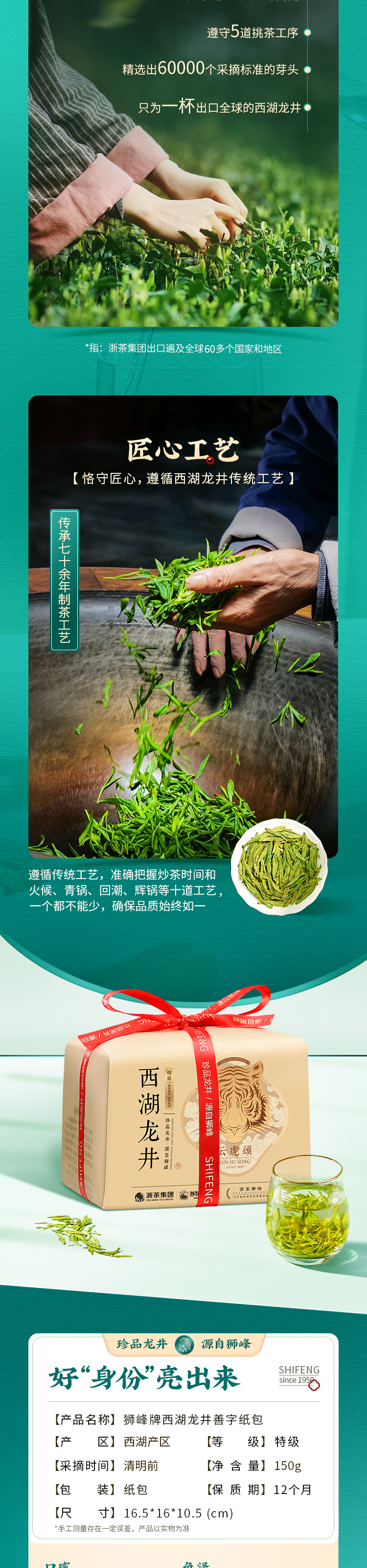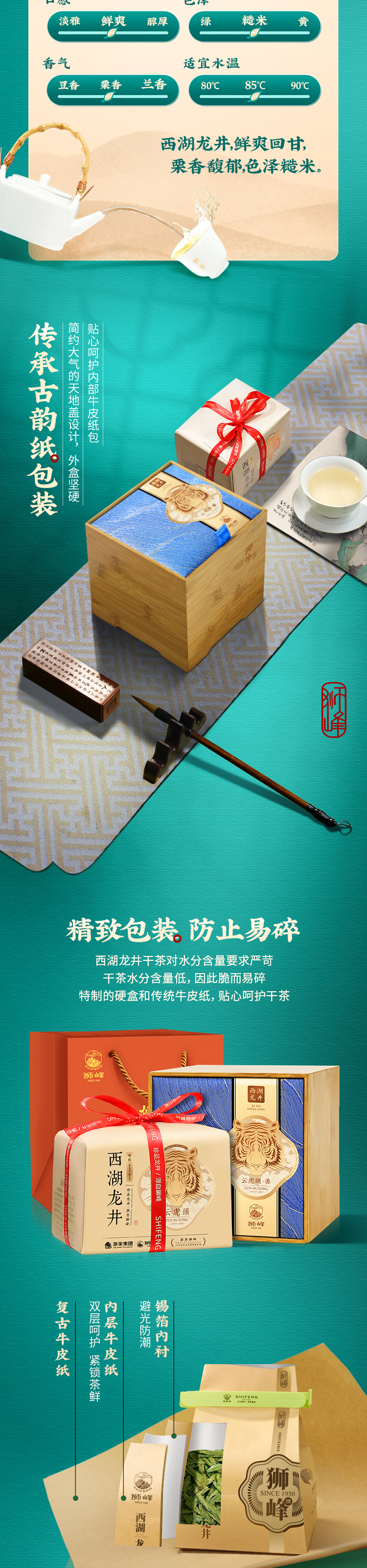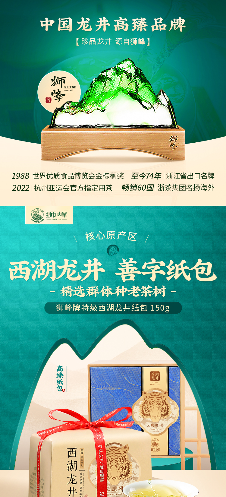狮峰牌西湖龙井纸包礼盒云虎颂梅善字150g.WN