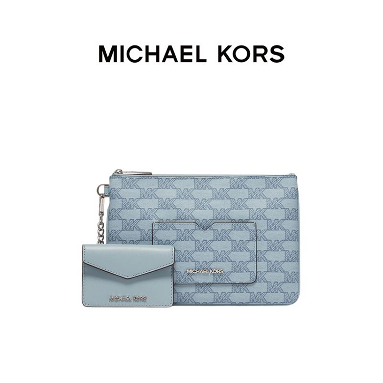 【品牌】 MK Jet Set Item 大号印花金属链条手拿包淡蓝色