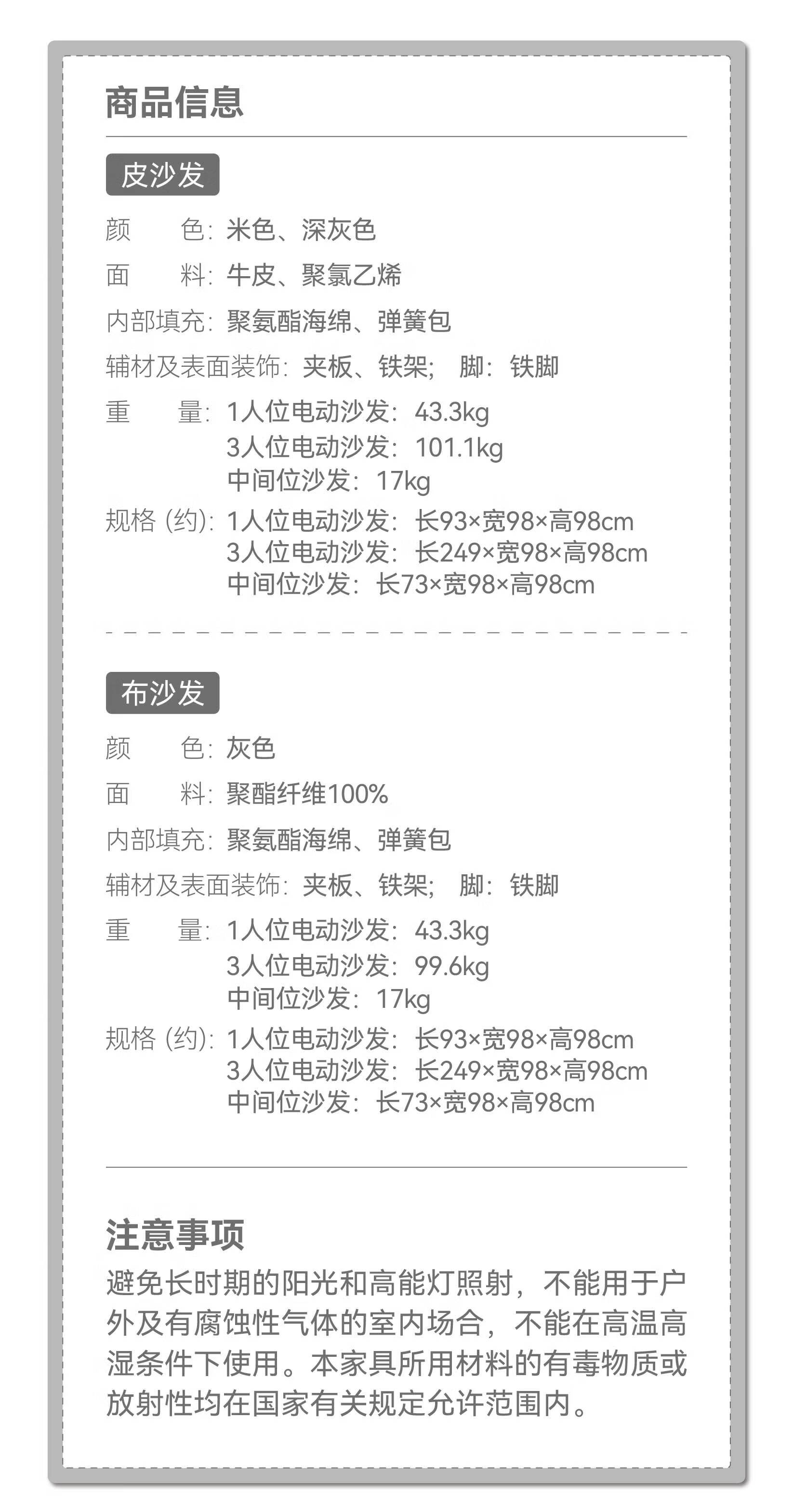 【家具】客厅简约皮沙发一人位三人位电动沙发UL082