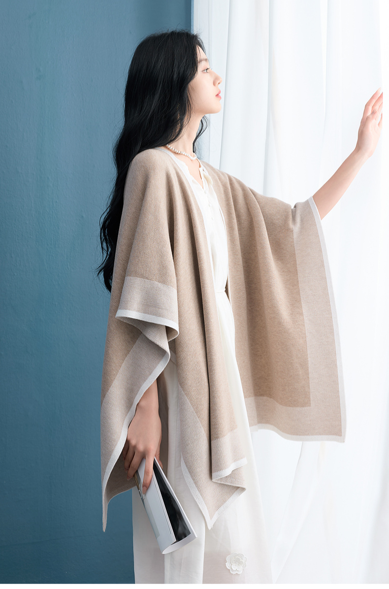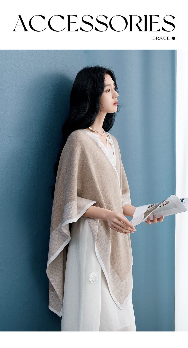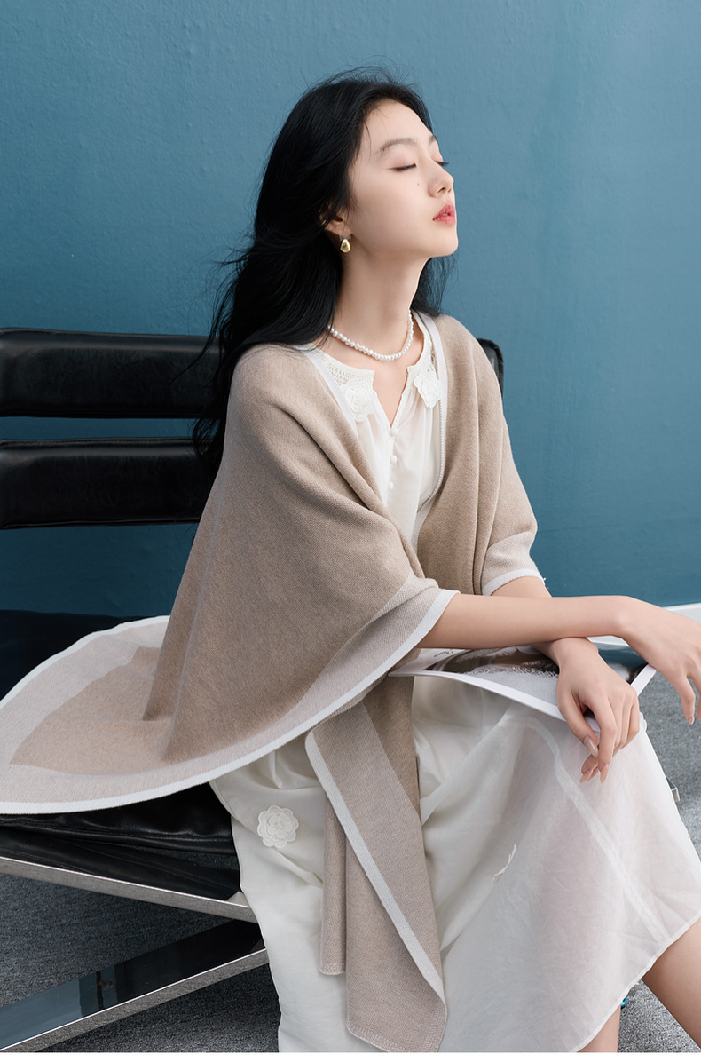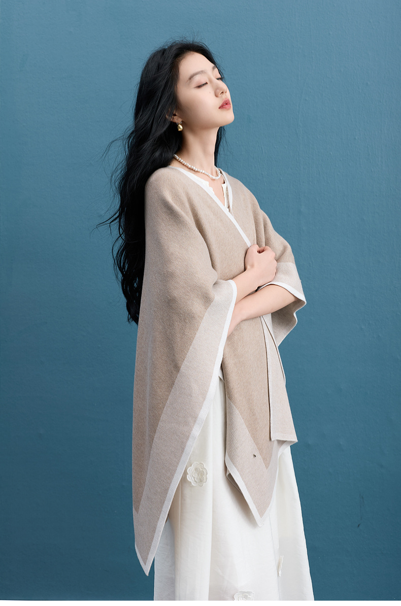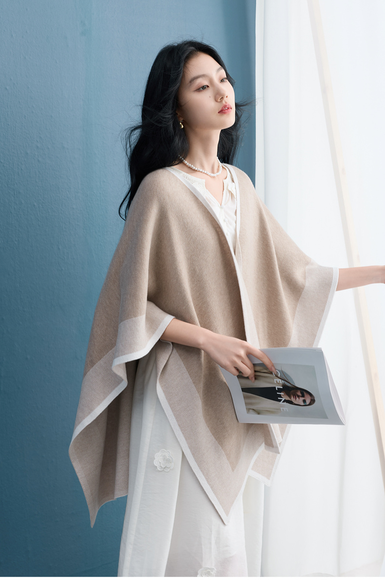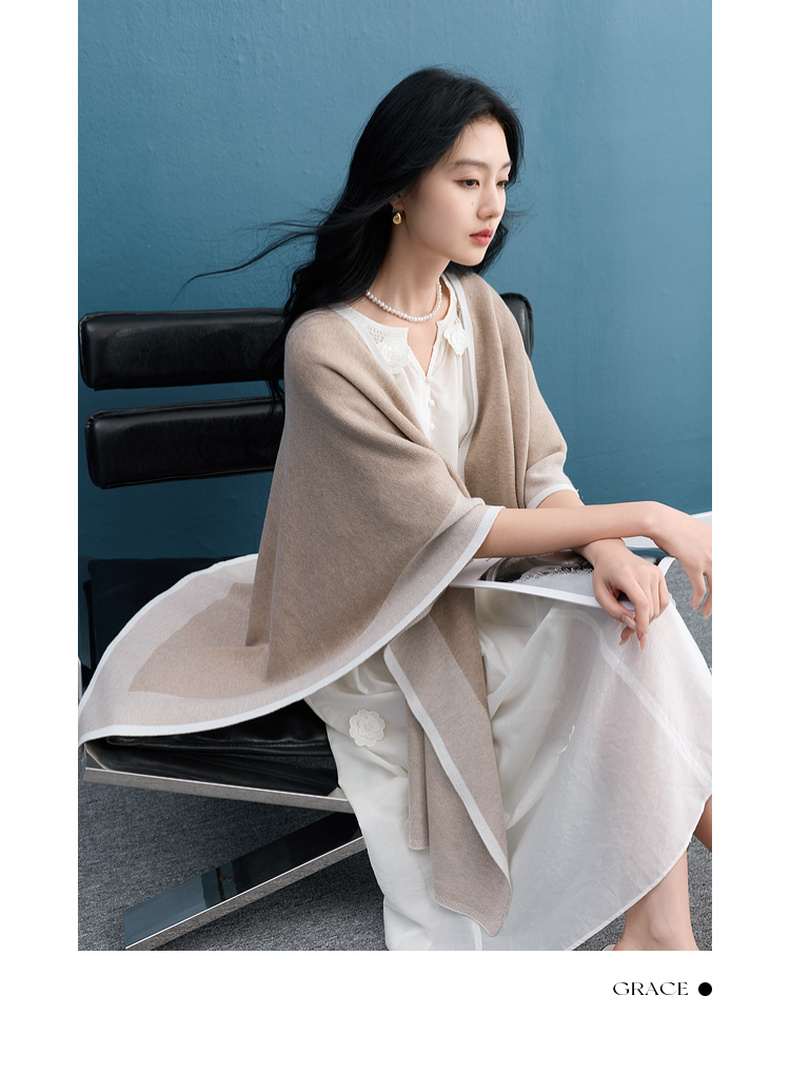 【绵羊毛】三彩2025新款知性风通勤外搭针织披肩简约保暖撞色