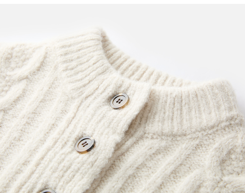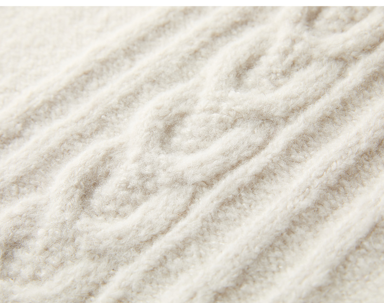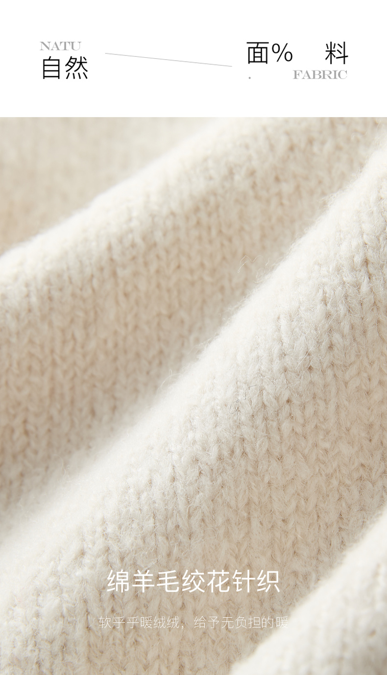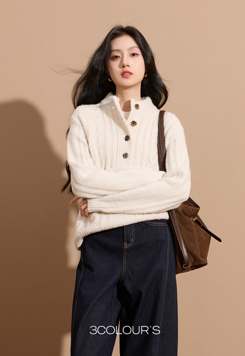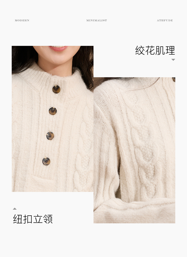 三彩2025冬季新款复古绞花立领针织衫宽松保暖套头毛衫高级感S