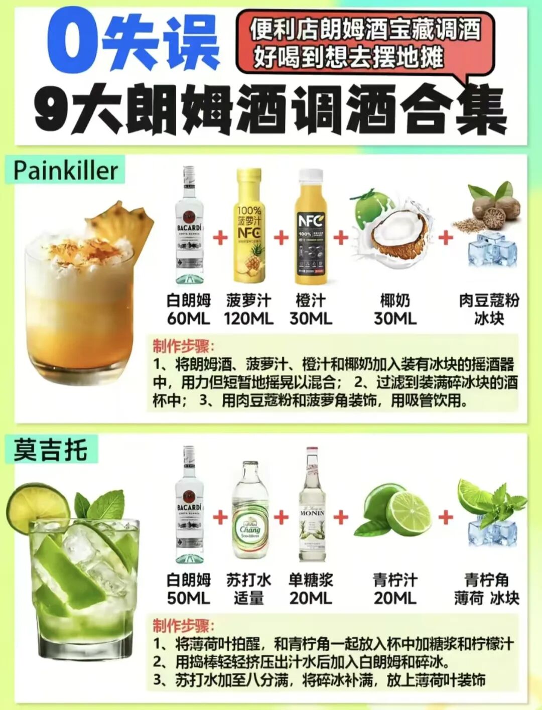 每种酒只需少量就能完成一杯专业级调饮