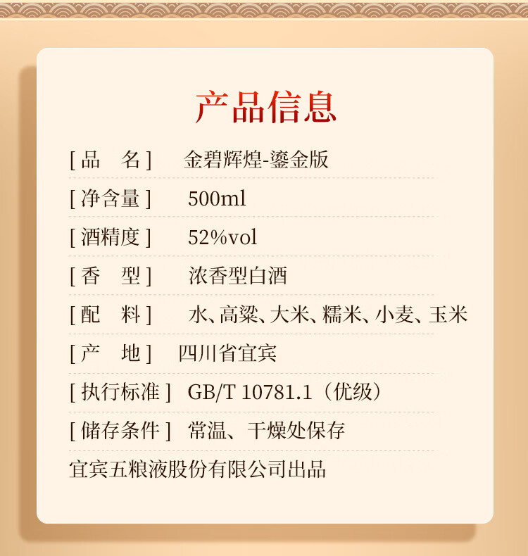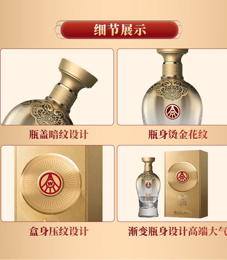 五粮液 金碧辉煌 鎏金版 52度浓香型白酒(单瓶装)