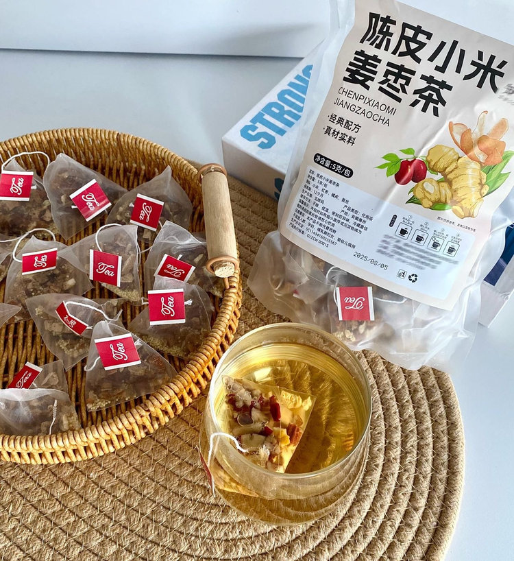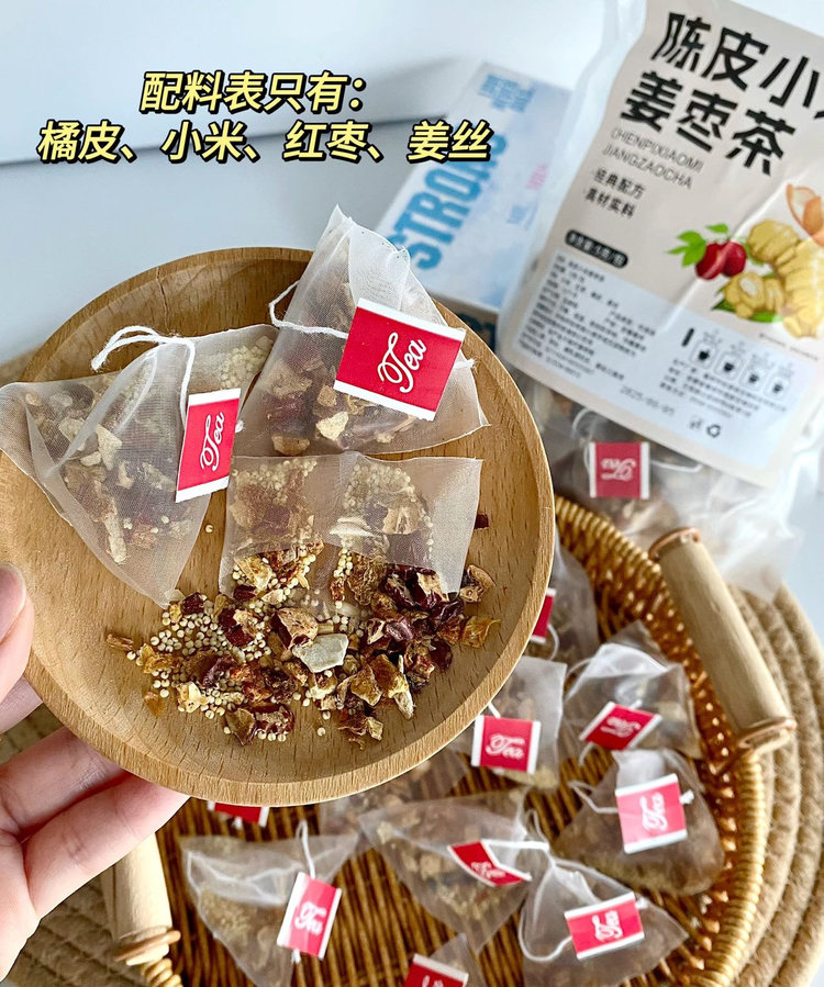 【陈皮小米姜枣茶】19.9💰到手60包❗️✅无添加❗️只有小米,姜丝,橘皮,红枣!✅独立小茶包,每天一杯♨️暖暖的真的很舒服!