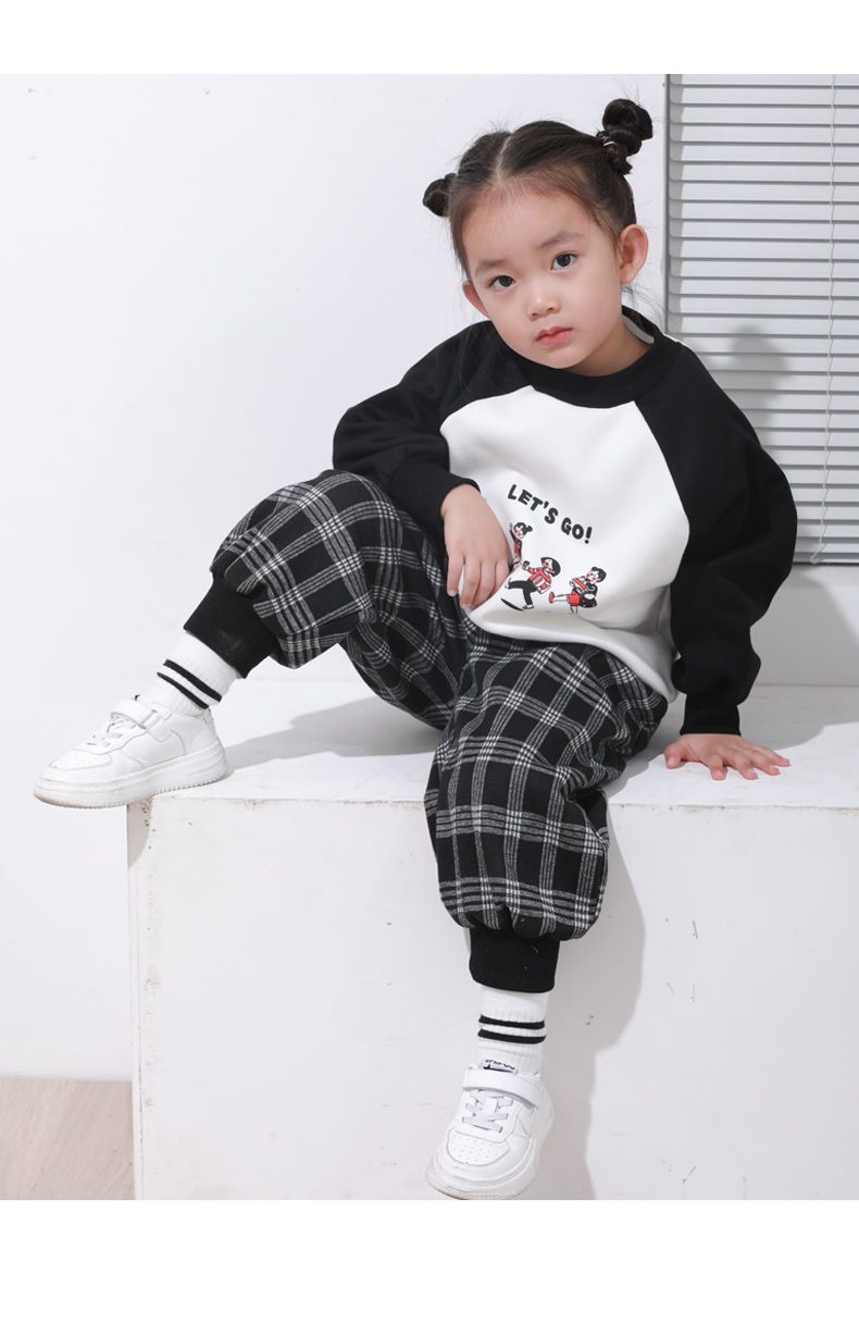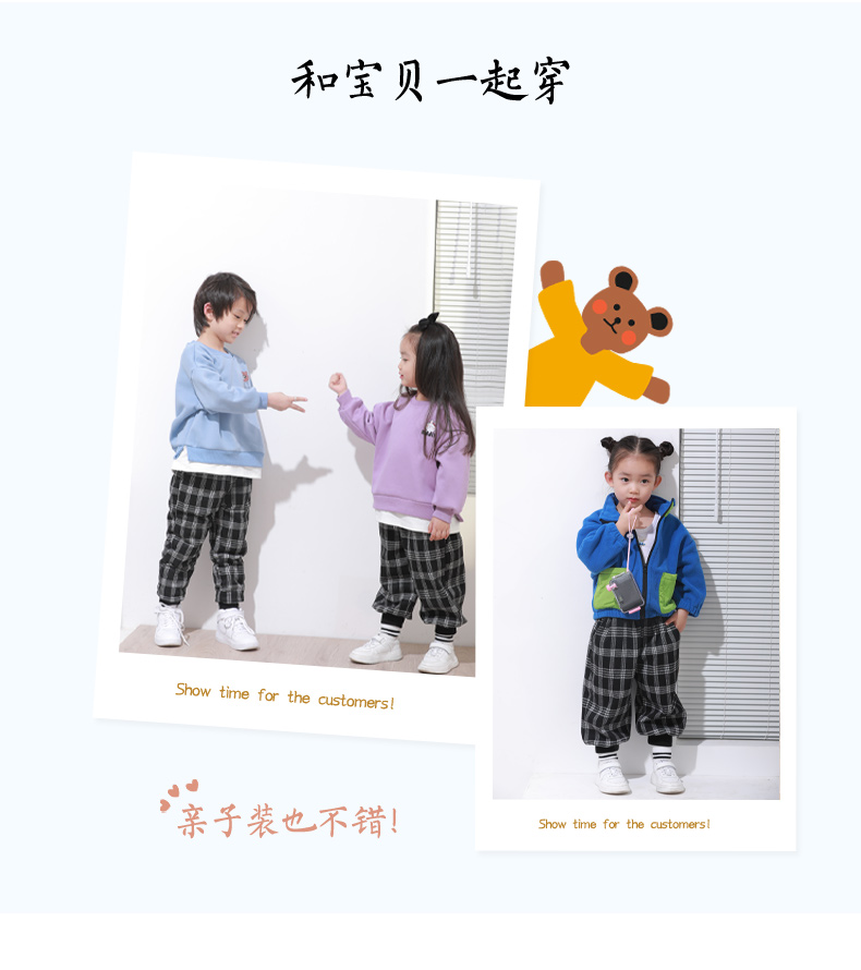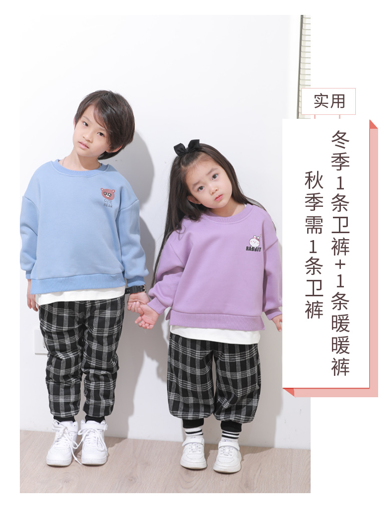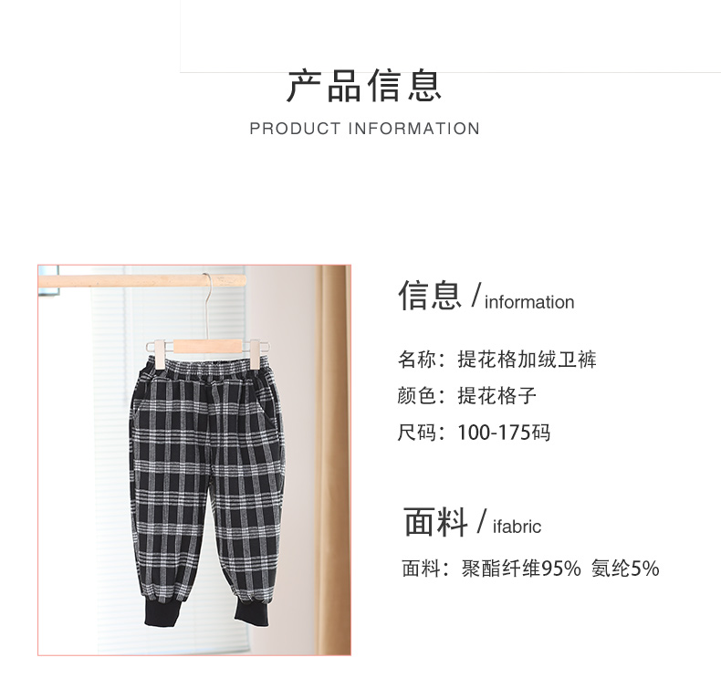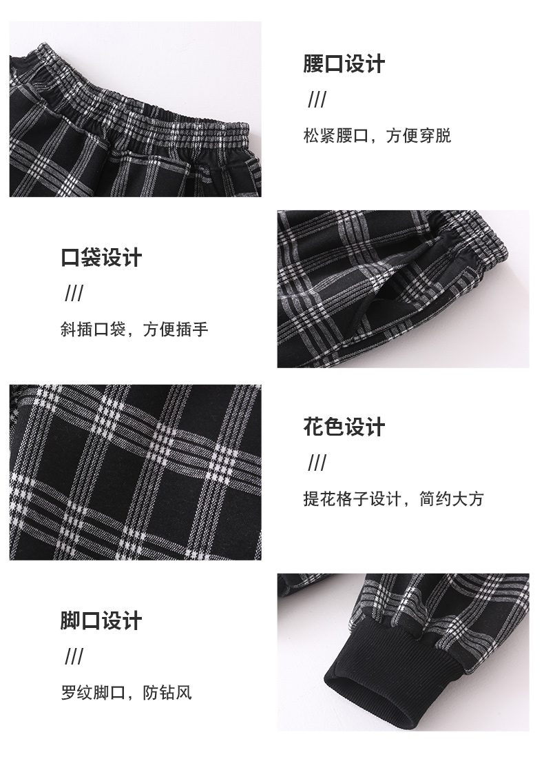 【清仓】龙之涵 提花格加绒卫裤 童装 A类 亲子装 时尚洋气卫裤