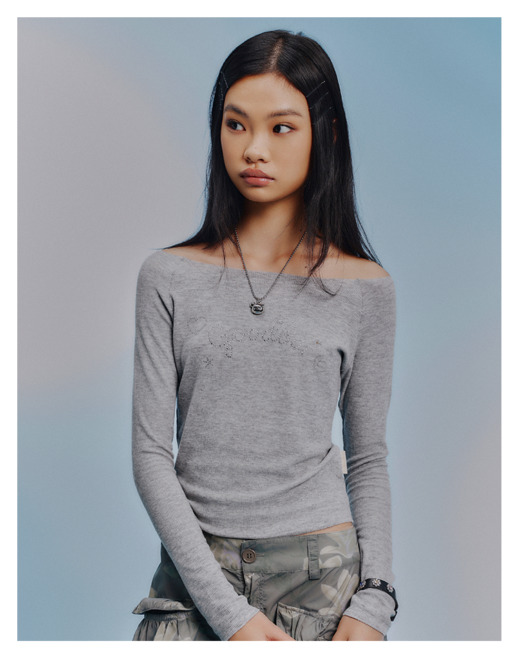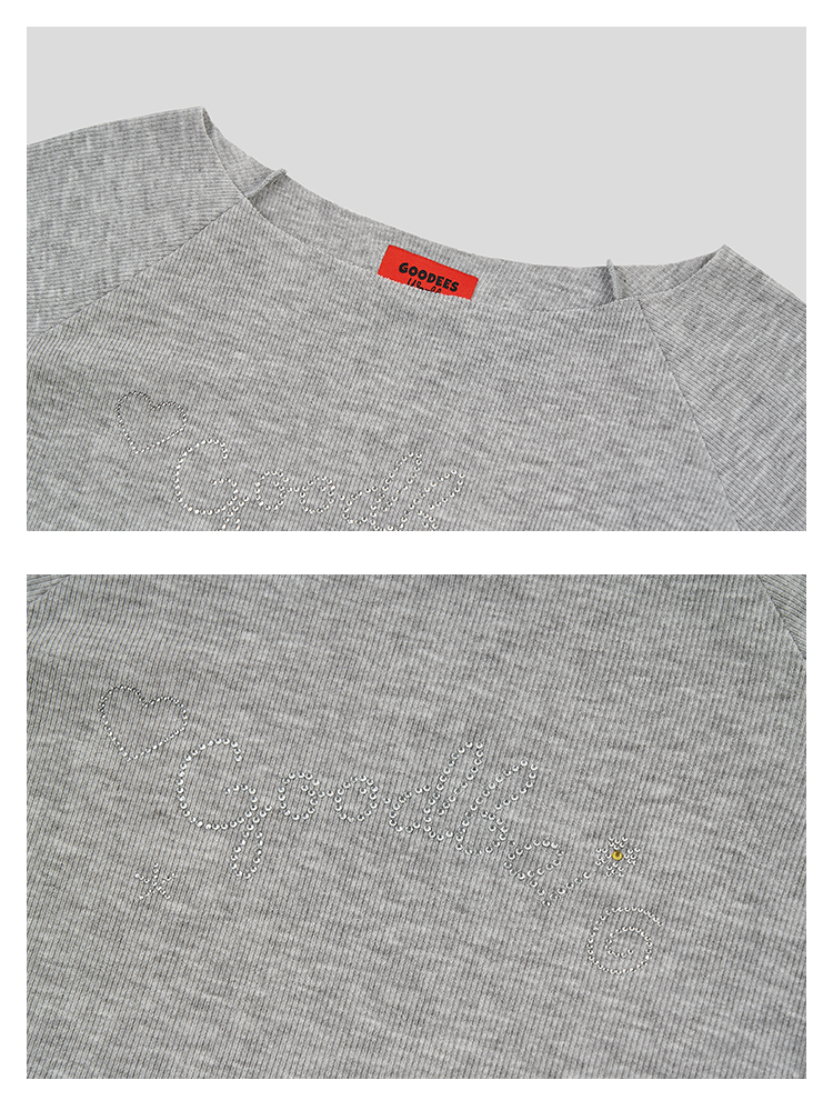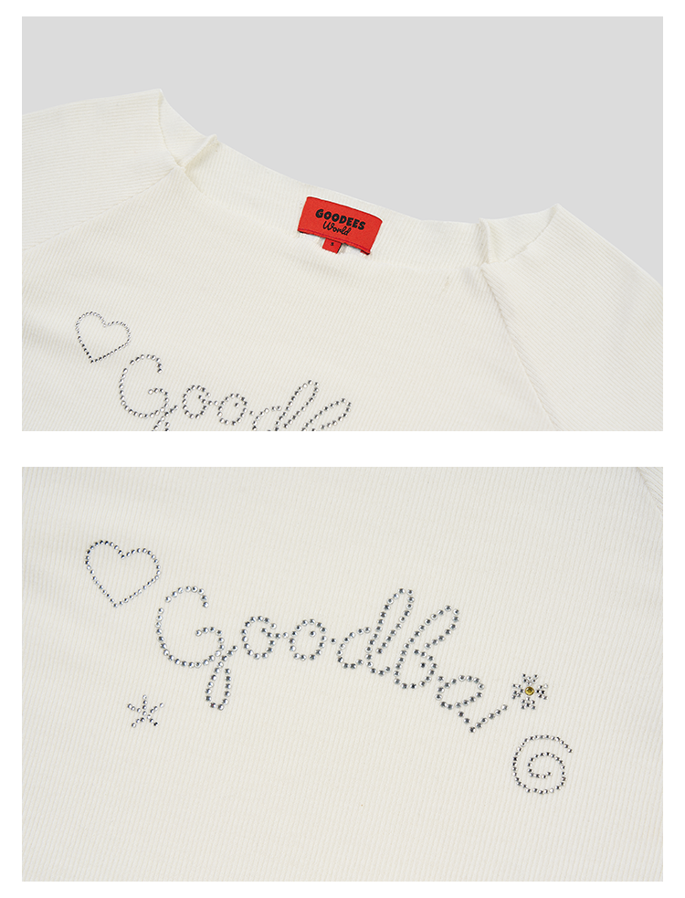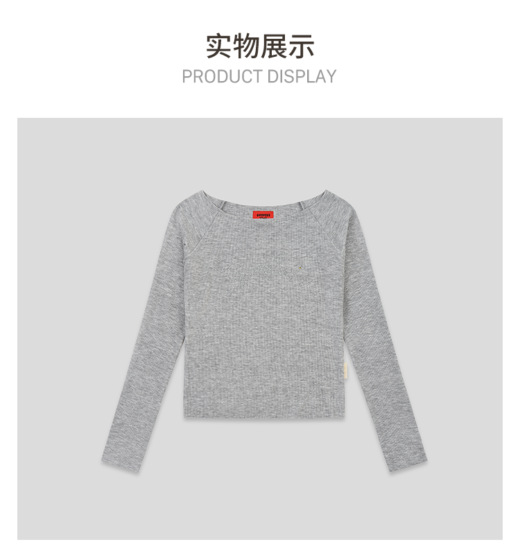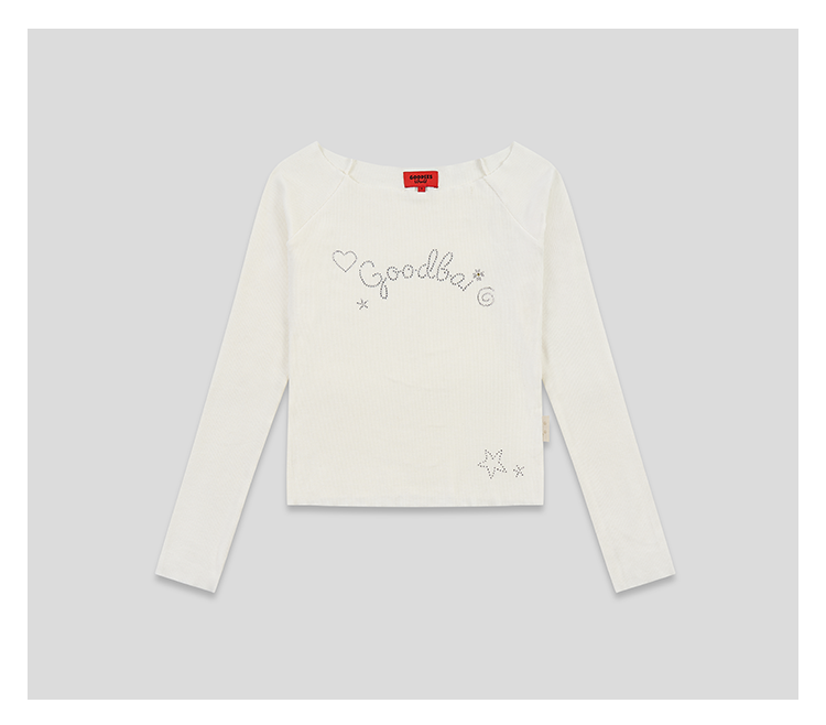GOODBAI GOODEES烫钻logo一字领长袖T恤