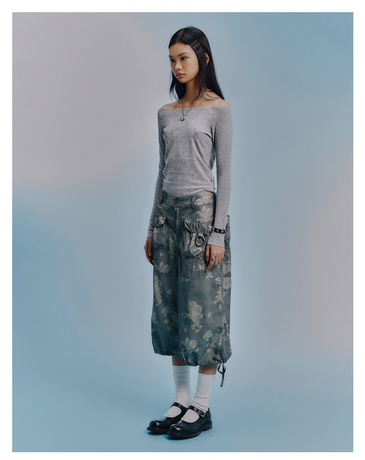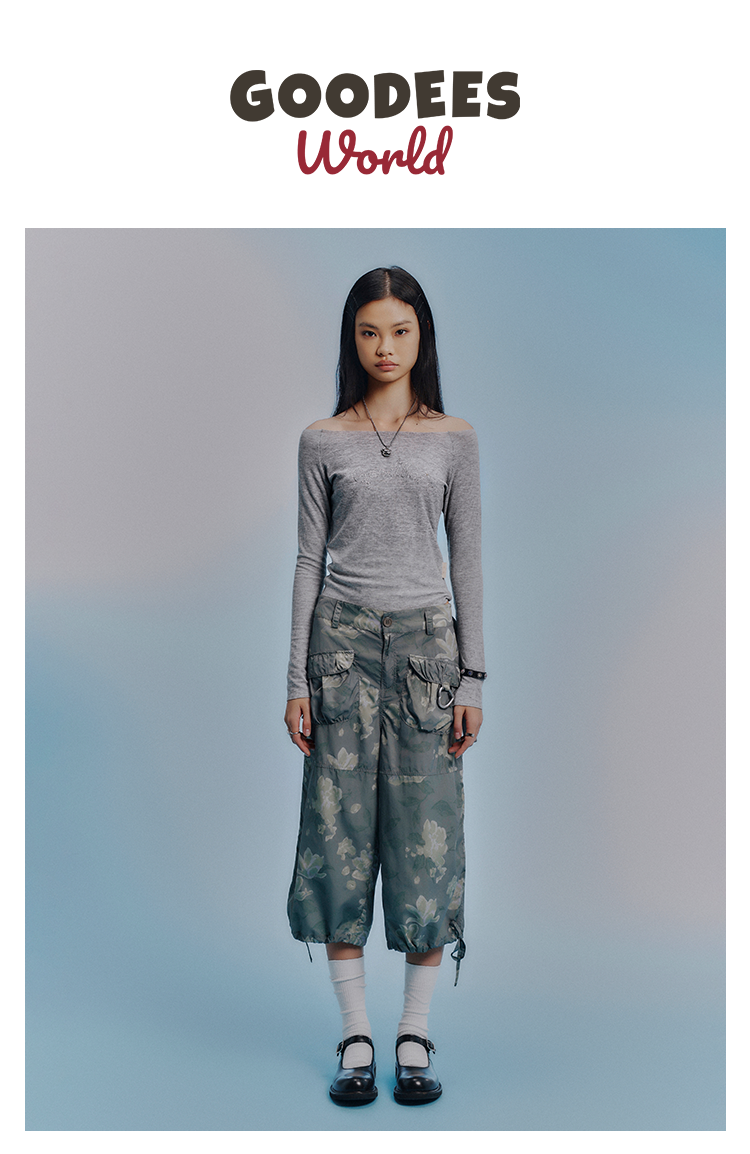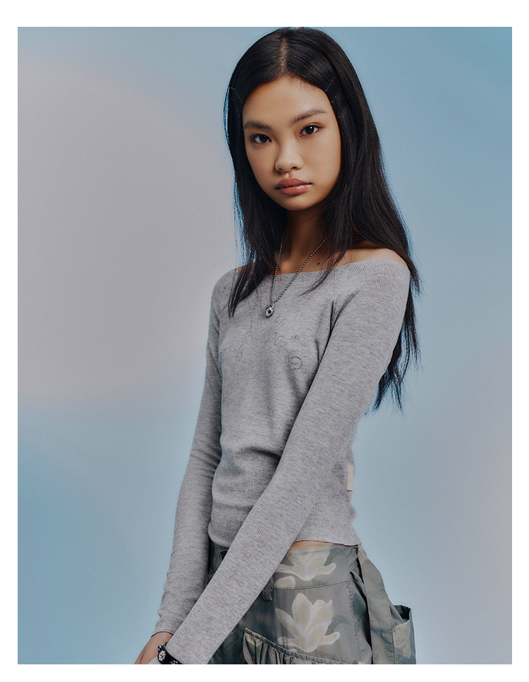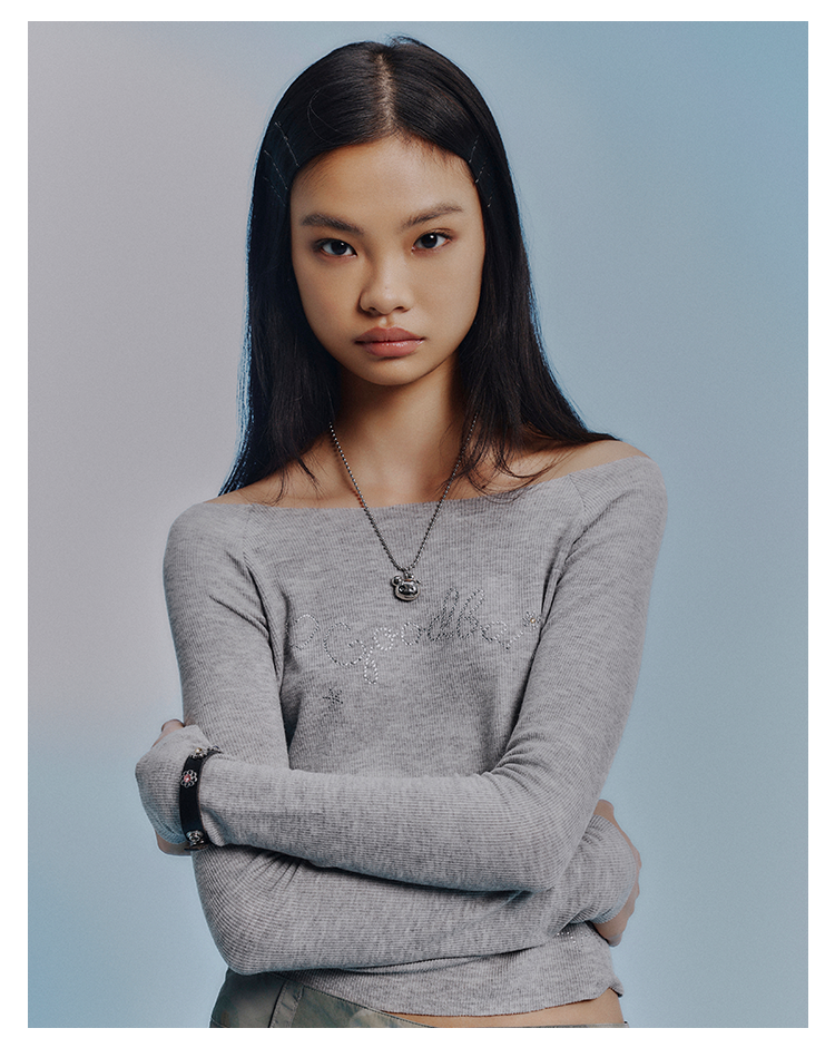 GOODBAI GOODEES烫钻logo一字领长袖T恤