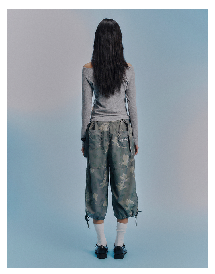GOODBAI 新款刺绣水洗高腰宽松抽绳直筒牛仔裤长裤女