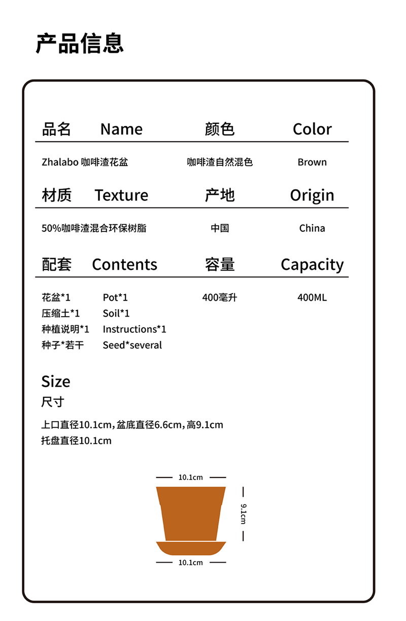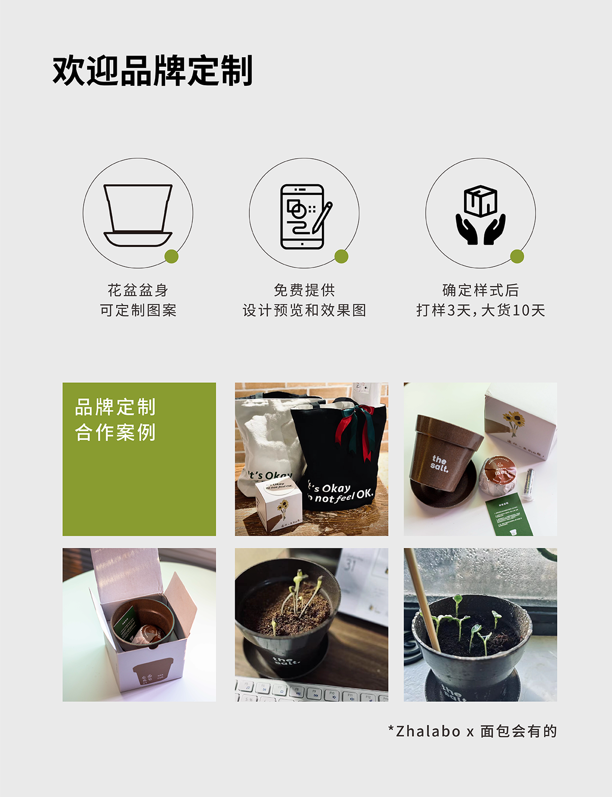 【定制产品不零售】Zhalabo咖啡渣花盆环保种植小盆栽绿植桌面办公室创意礼品