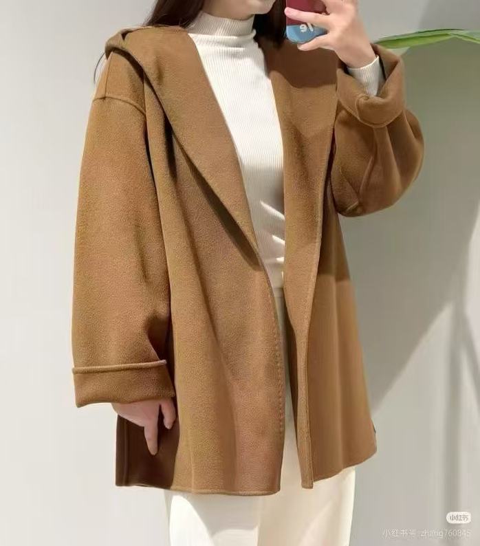 太太太喜欢这件简约双面呢大衣了!!MAX经典浴袍款姐妹们还有印象吗?小禾完美演绎!一手长浴袍款,区别于以往的长款长度,这款的size属于适合国人的长短和宽松度,喜欢小款,简单利落版型双面呢的姐妹们闭眼入这件!非常经典的浴袍连帽风格~大气又万能百搭,可以从20岁穿到80岁,浴袍的气场真的是谁穿谁好看,这个价格入手简直了!面料成分:93% 绵羊毛 7% 山羊绒