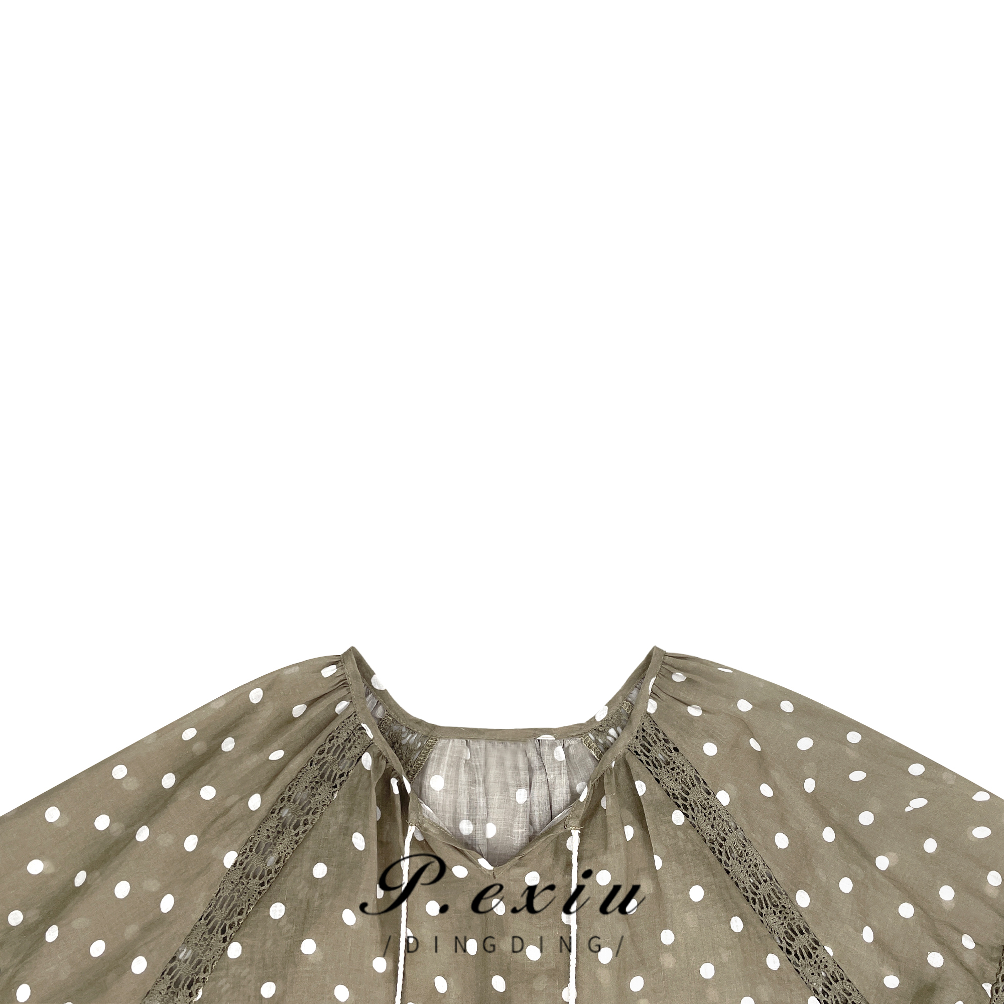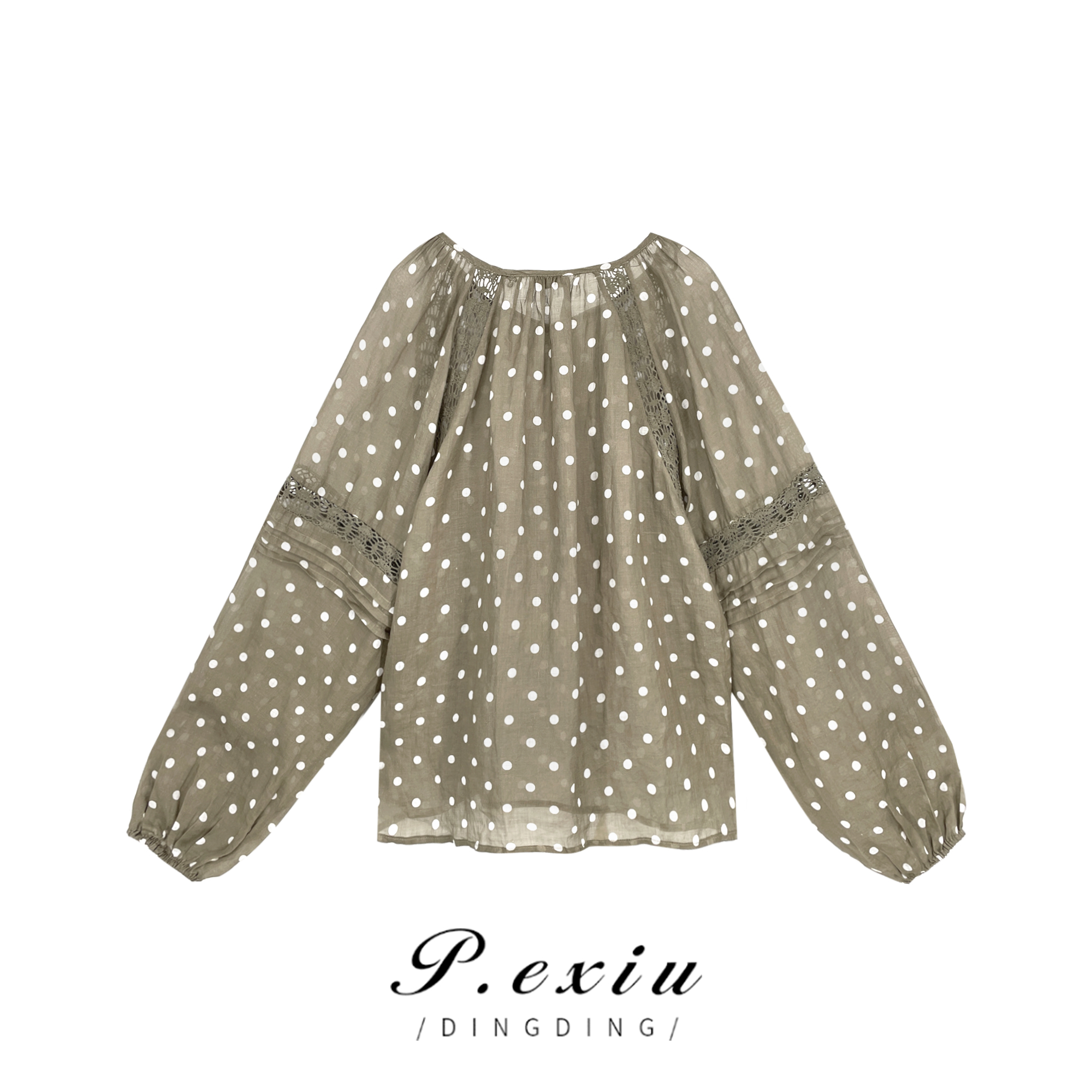 03-5潘依绣丁丁宠粉PanYiXiu/潘依绣【前后两穿】100%苎麻系带高级感波点衬衫 W-61381