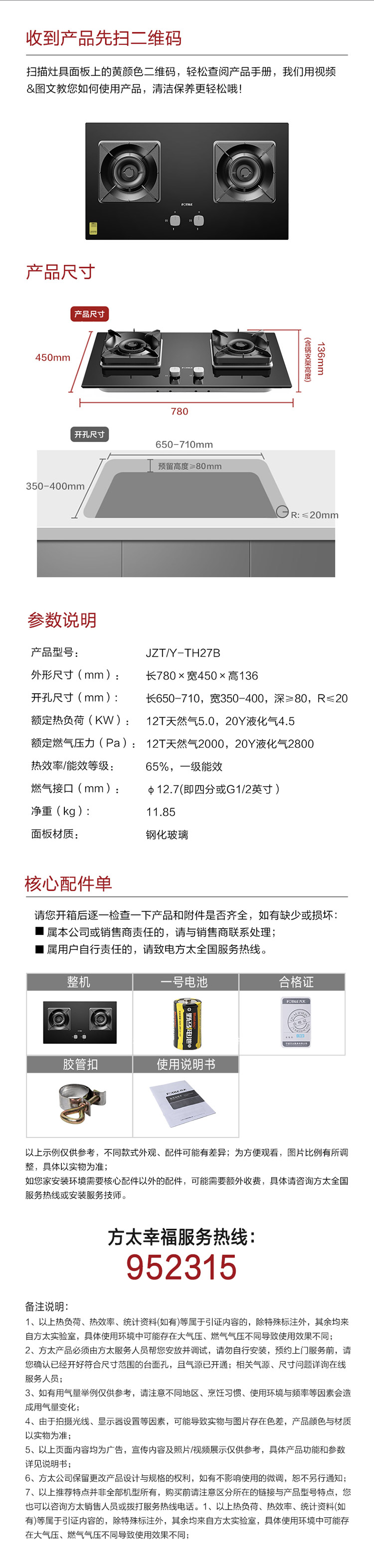 方太(FOTILE)抽吸油烟机灶具套装侧吸式变频烟灶套装23大风量超薄近吸挥手智控烟机猛火双灶 P3+TH27B(天然气)