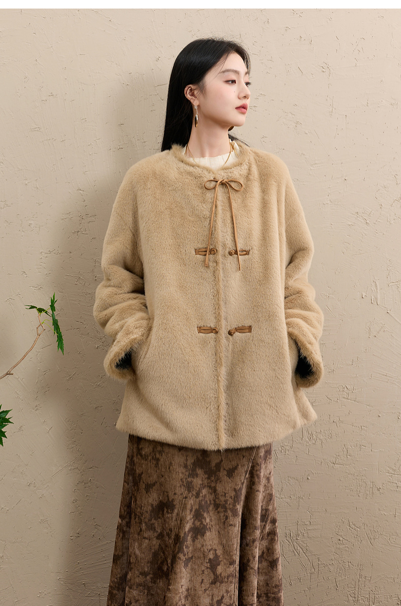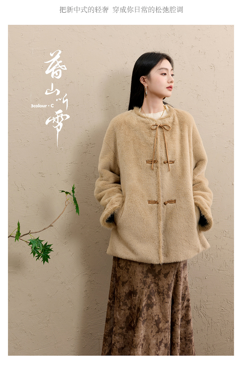 三彩懒人皮草【暮山听雪】2025冬季新款仿水貂毛两面穿毛毛外套C