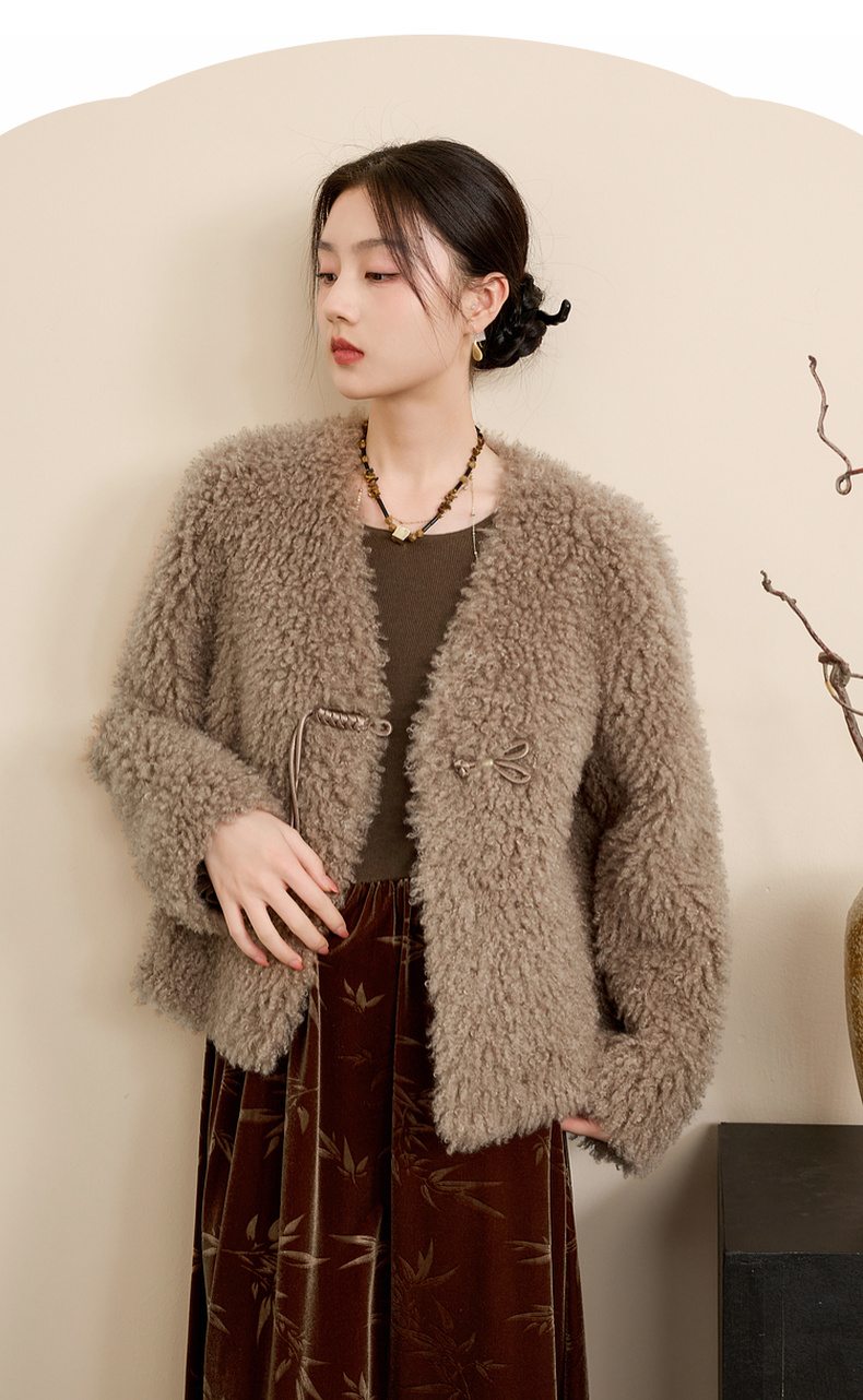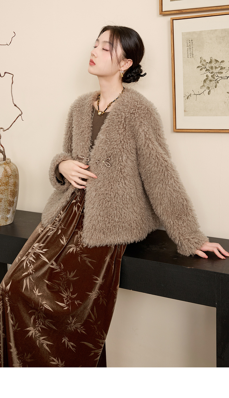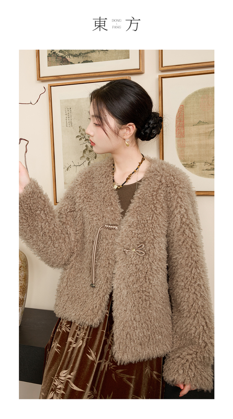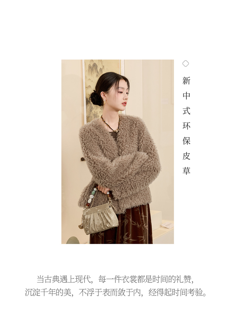 三彩【日暮初雪】2024冬季新款新中式环保皮草仿泰迪毛绒外套女C