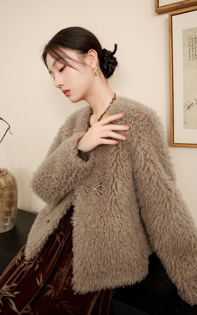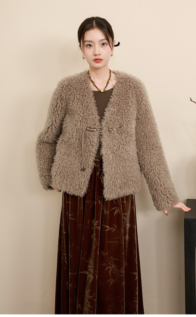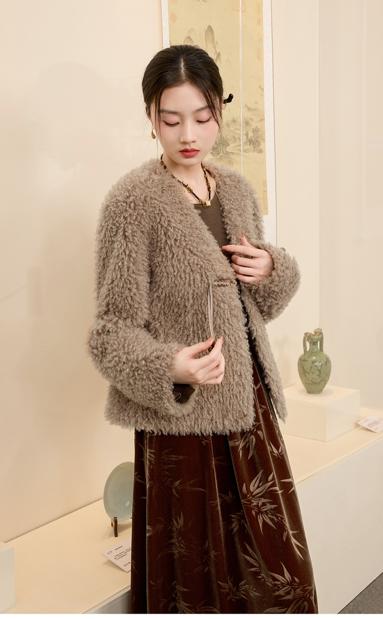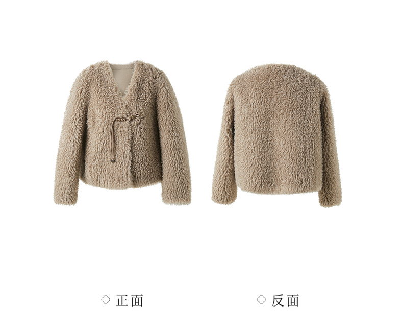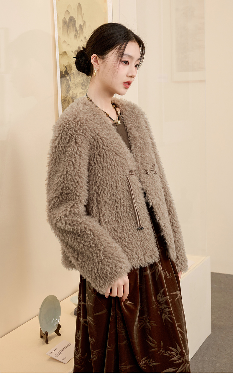 三彩【日暮初雪】2024冬季新款新中式环保皮草仿泰迪毛绒外套女C