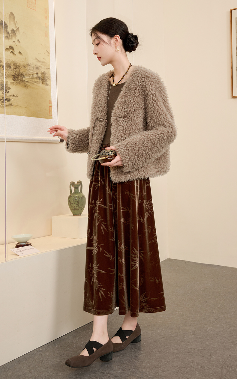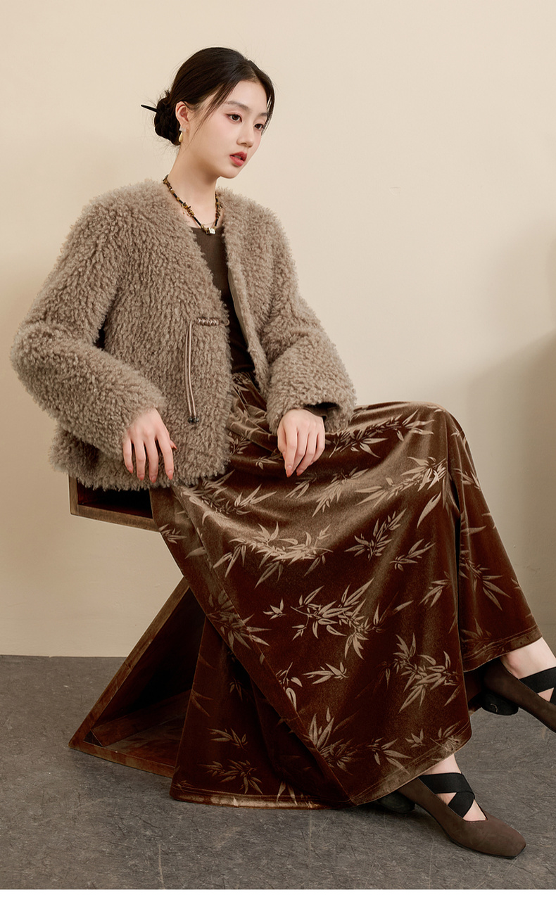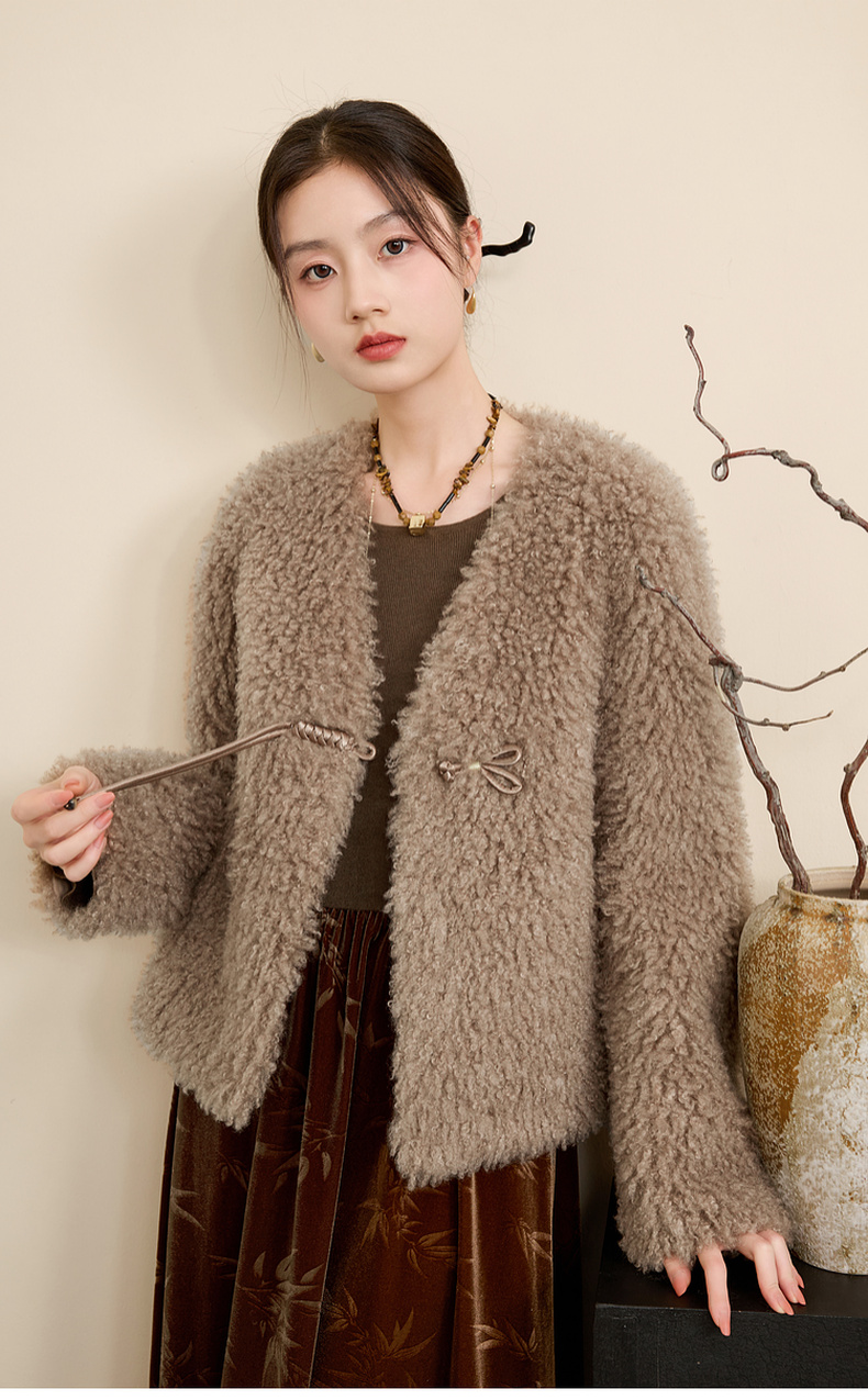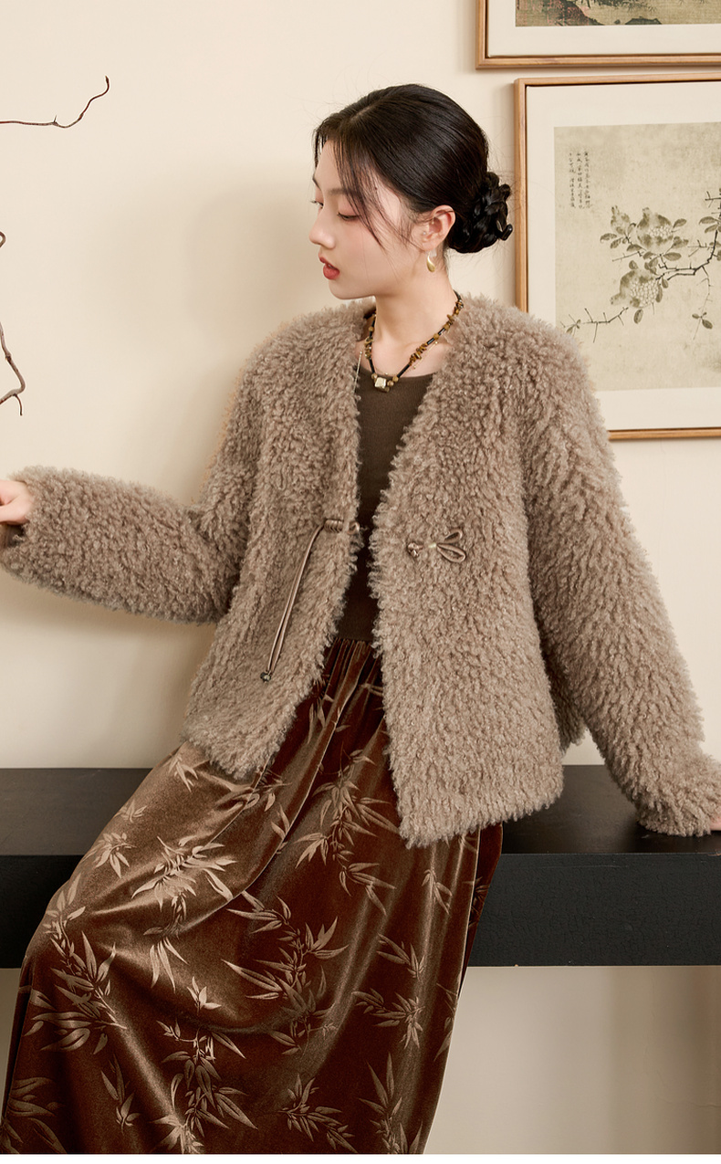 三彩【日暮初雪】2024冬季新款新中式环保皮草仿泰迪毛绒外套女C