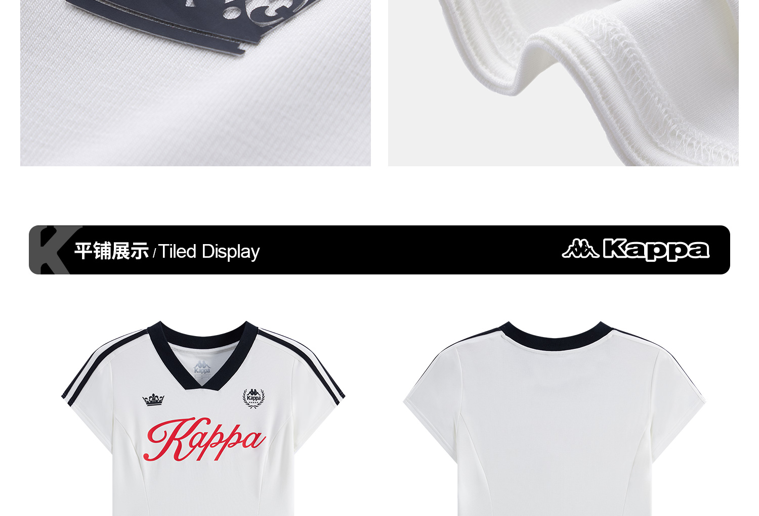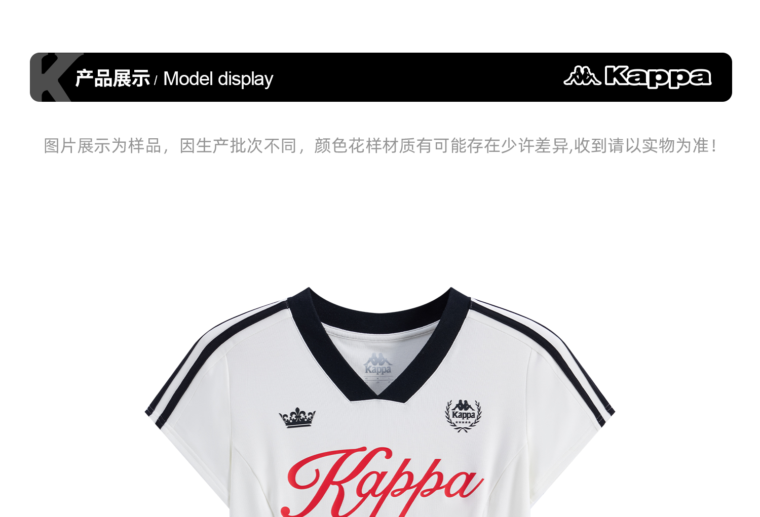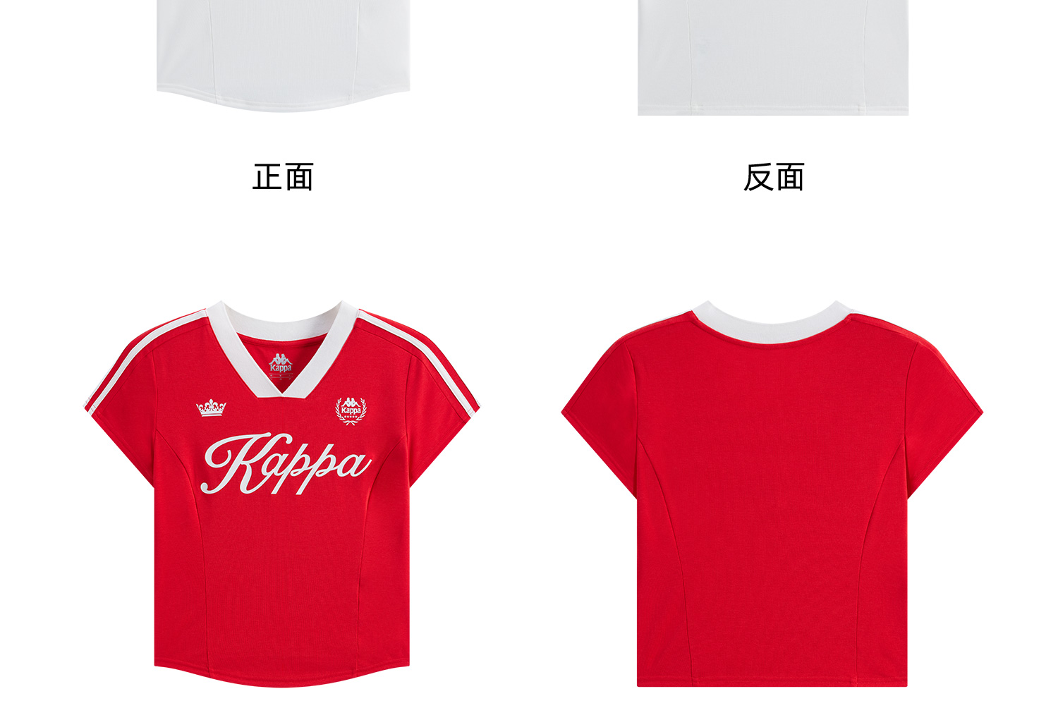 Kappa卡帕背靠背2025夏季新款运动短袖女士修身V领t恤休闲上衣女K0F62TD02