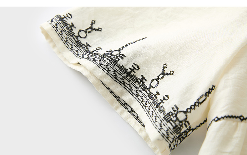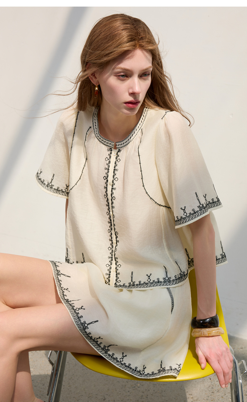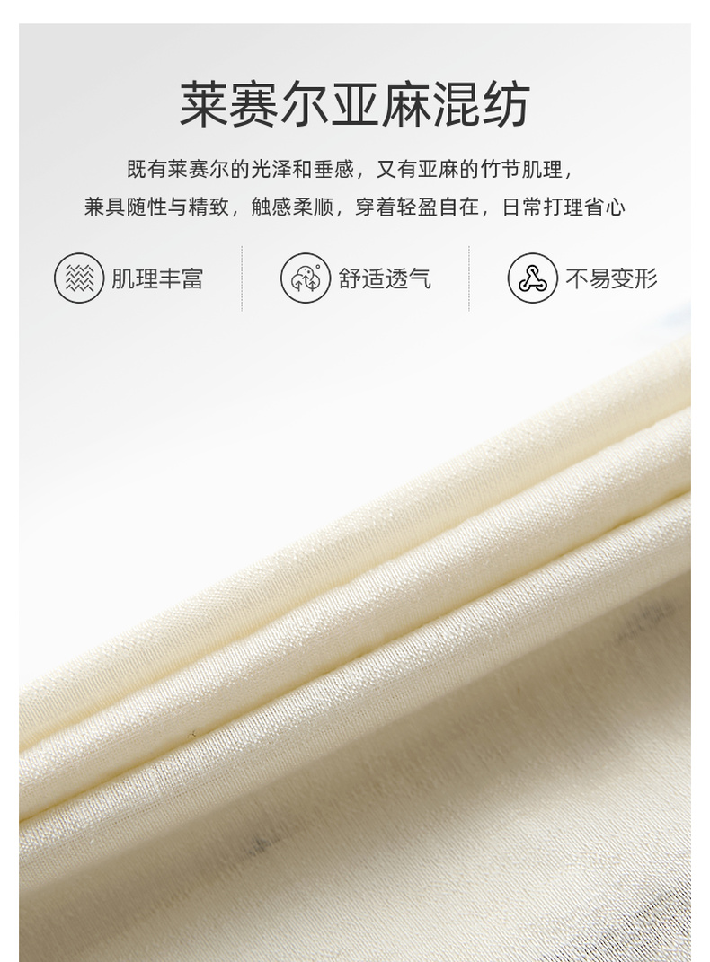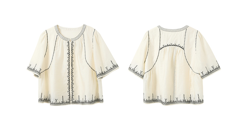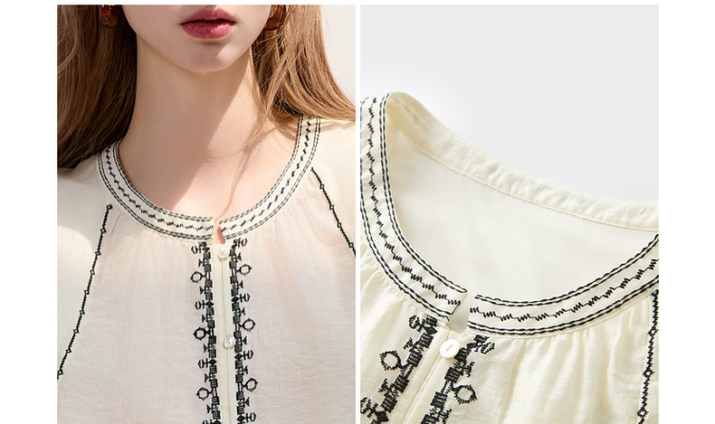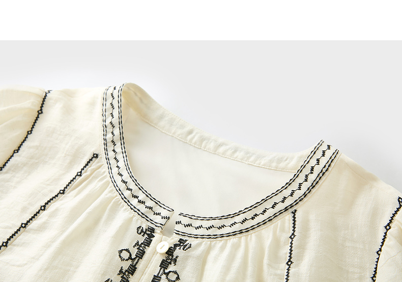 【莱赛尔+亚麻】三彩2025夏季新款刺绣小衫圆领宽松五分袖上衣法式S
