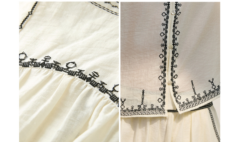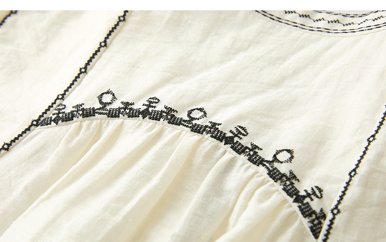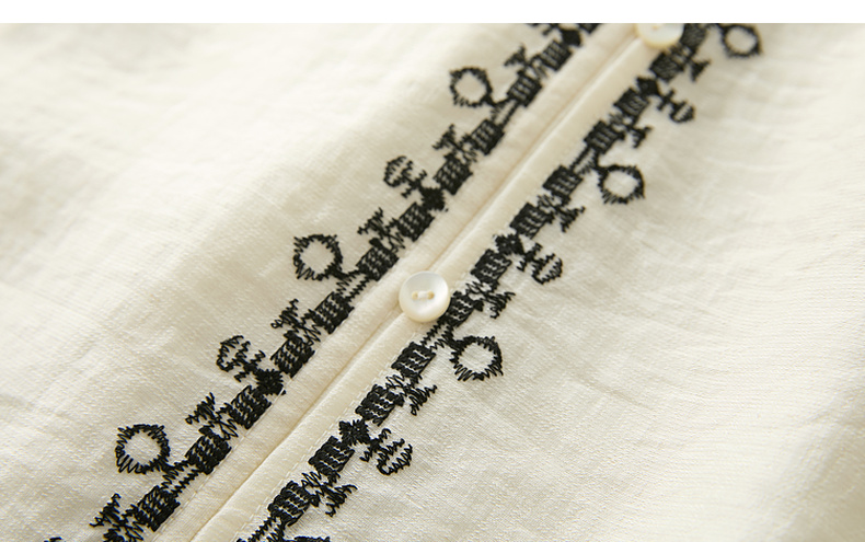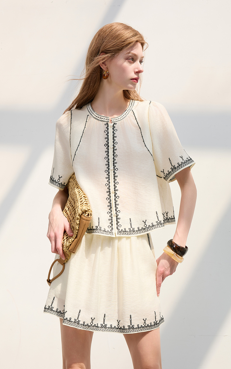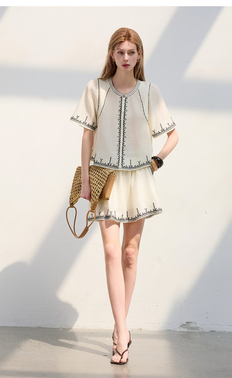 【莱赛尔+亚麻】三彩2025夏季新款刺绣小衫圆领宽松五分袖上衣法式S