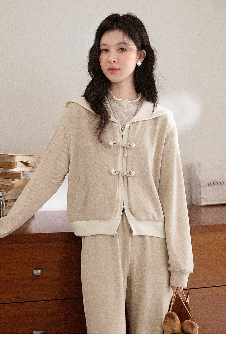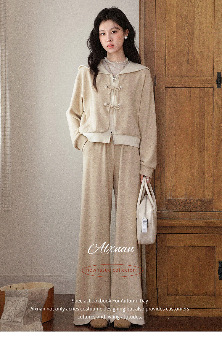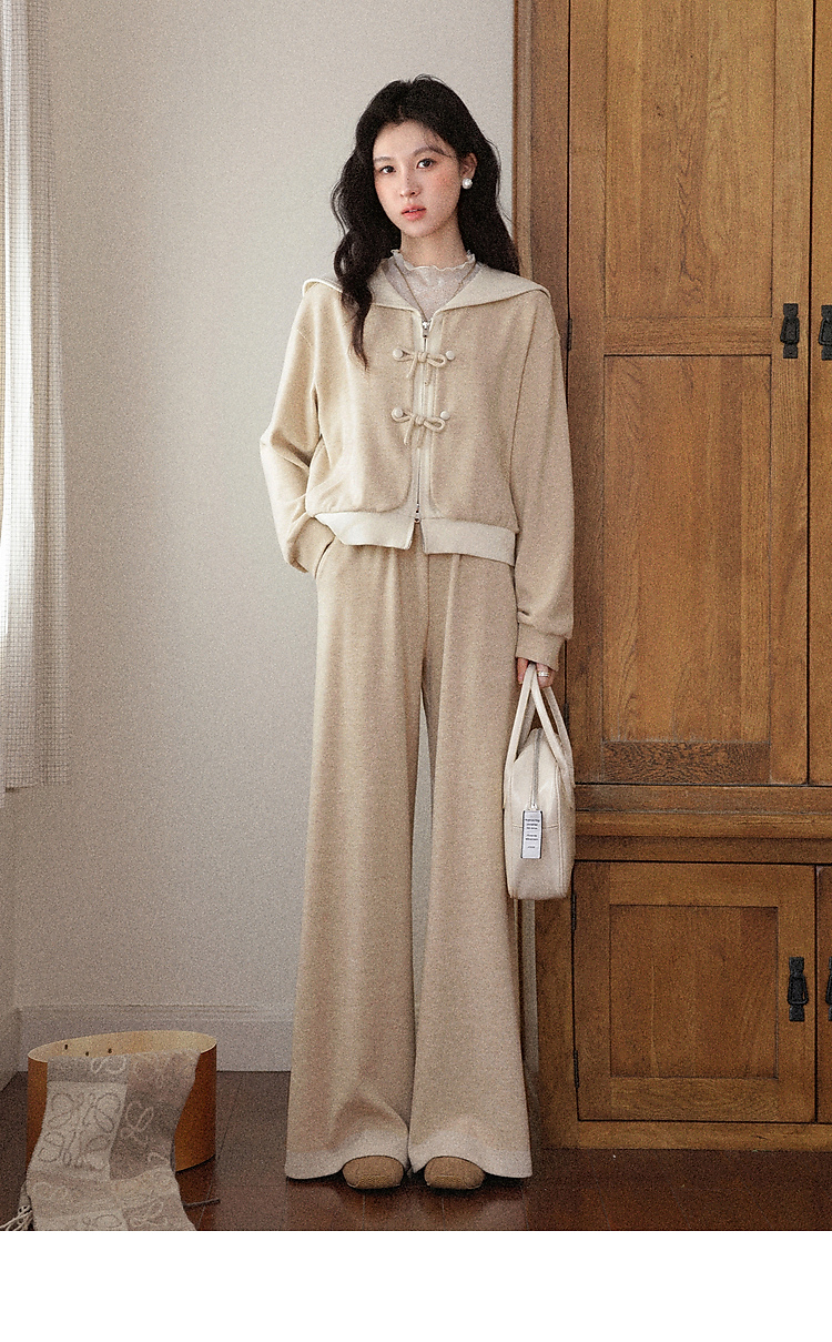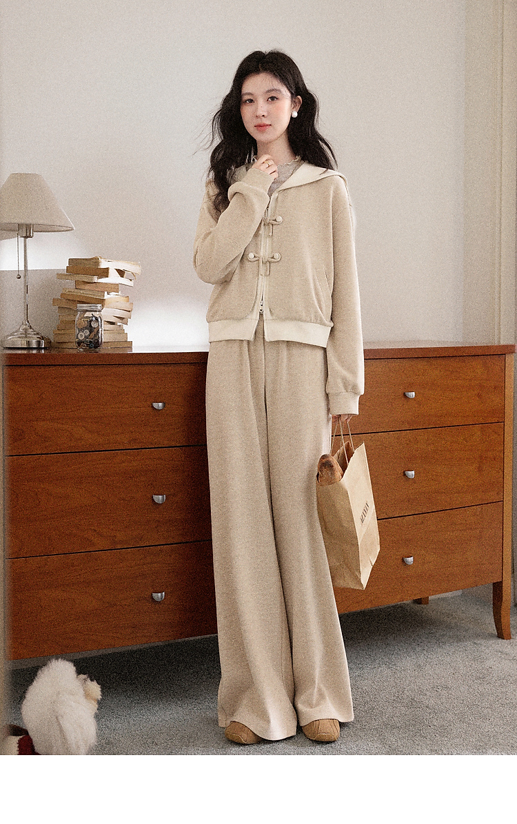 鹿向南「慵懒手账」燕麦色一整套ootd穿搭女秋冬假两件卫衣阔腿裤