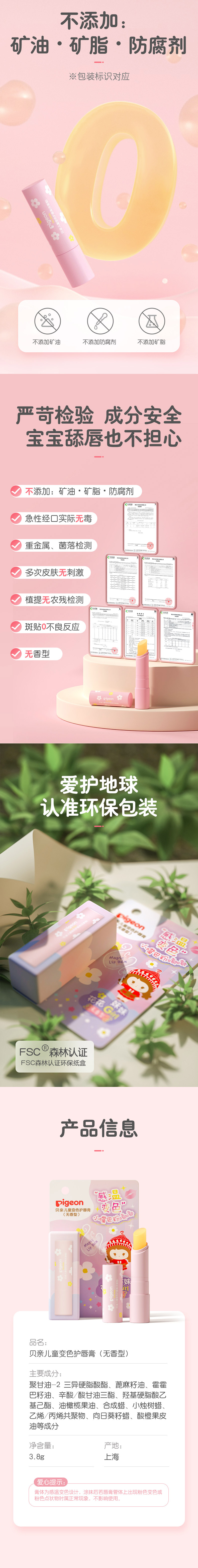 【官方自营】奚梦瑶推荐!PIGEON/贝亲儿童变色护唇膏