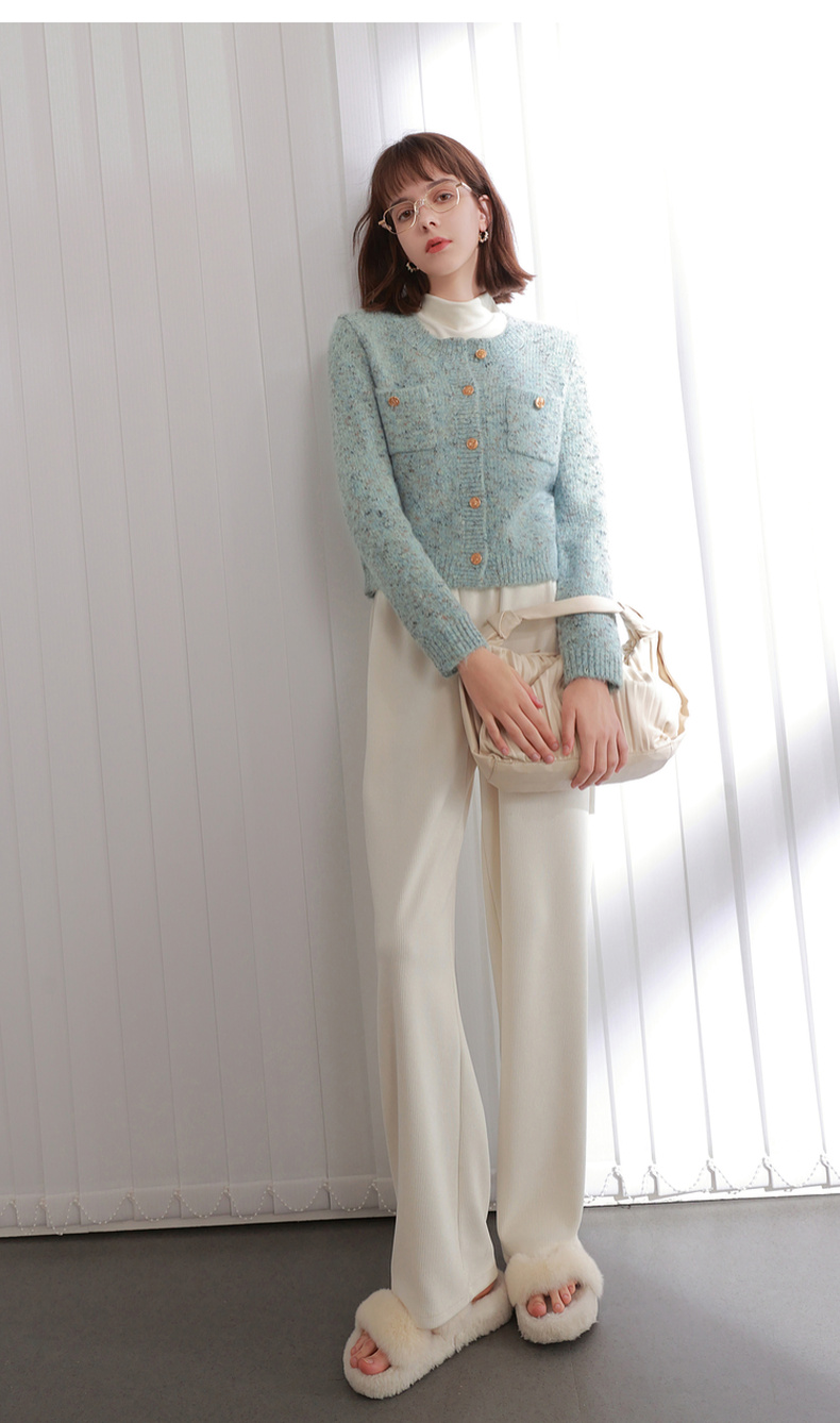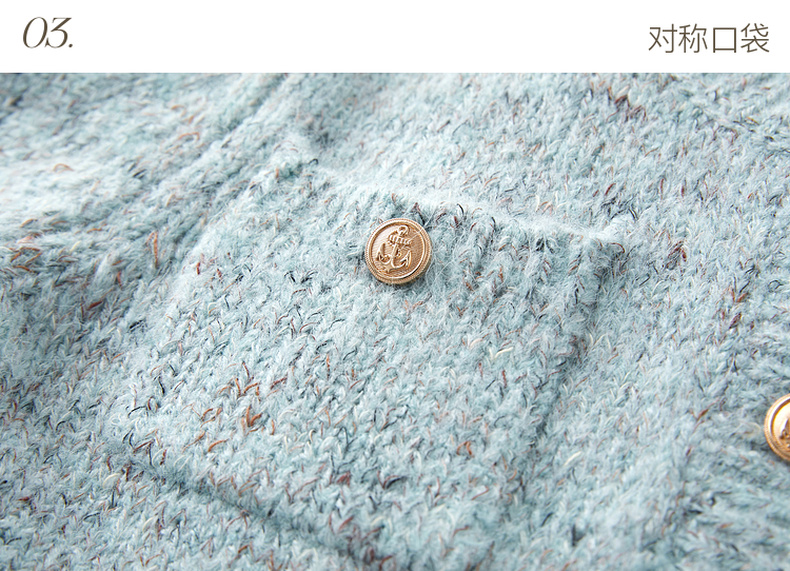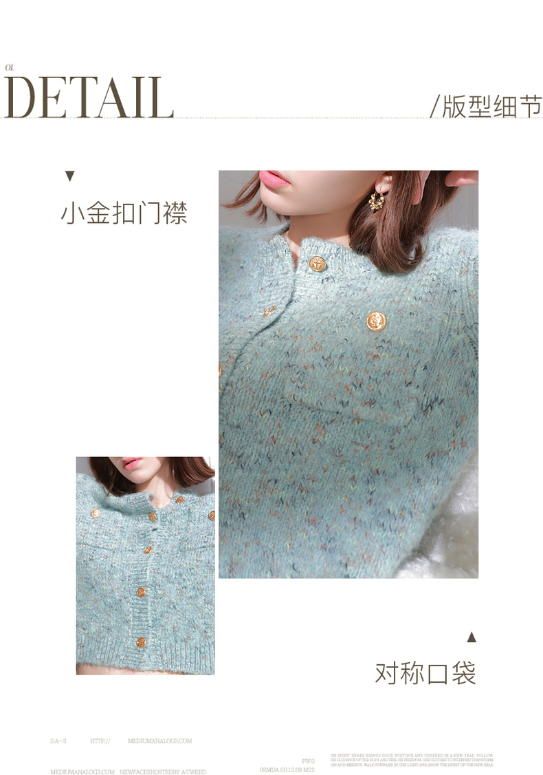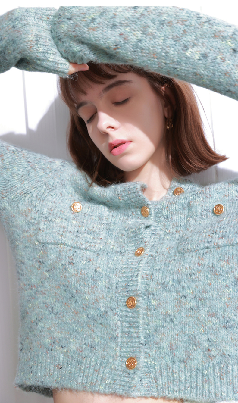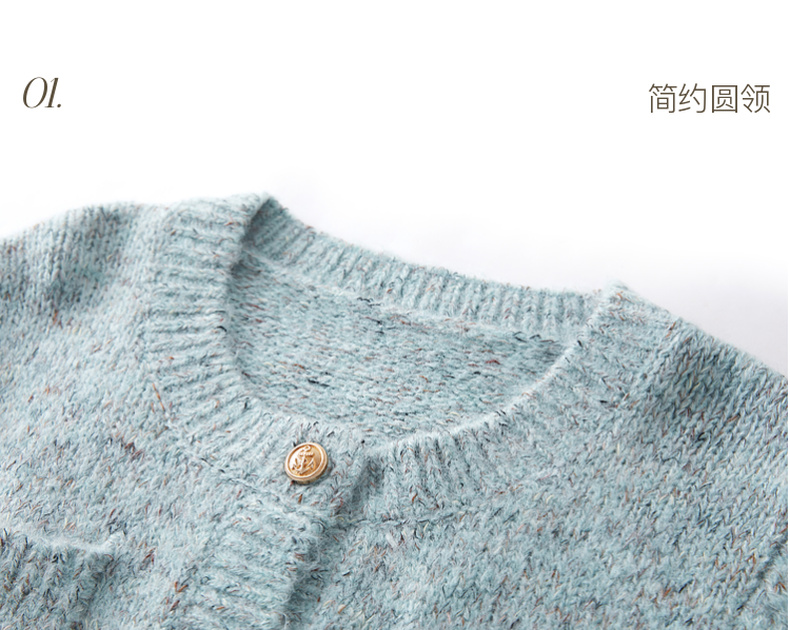 三彩2025冬季新款奶油花纱针织衫香风圆领毛衣开衫短款毛衫M