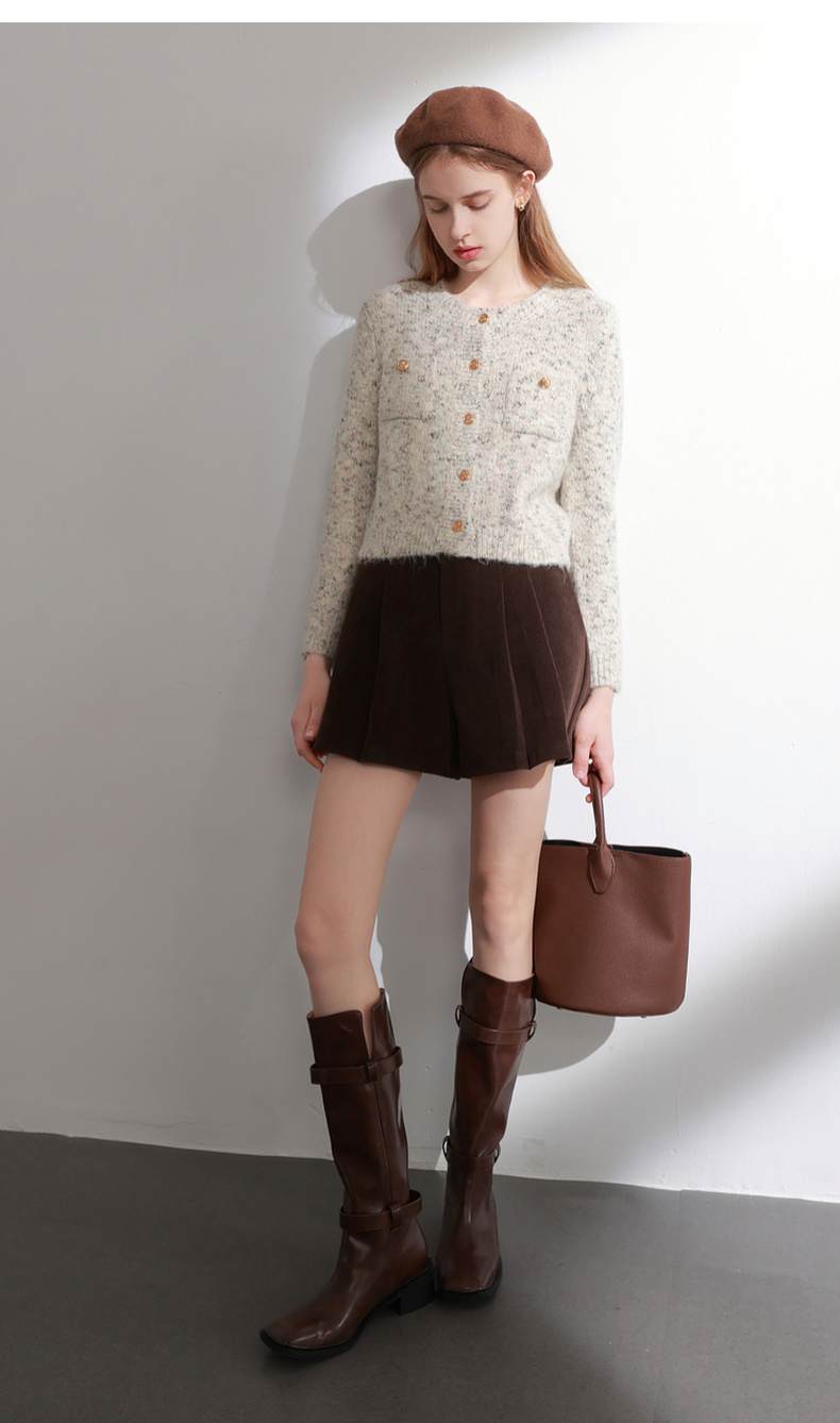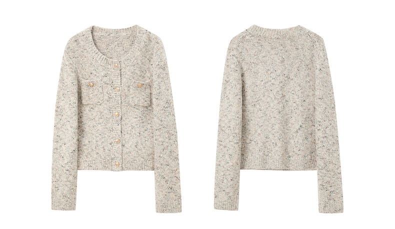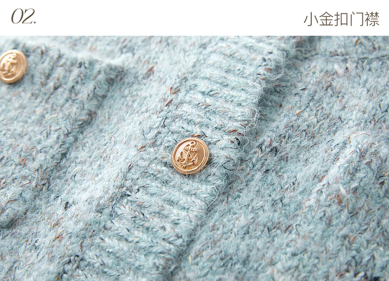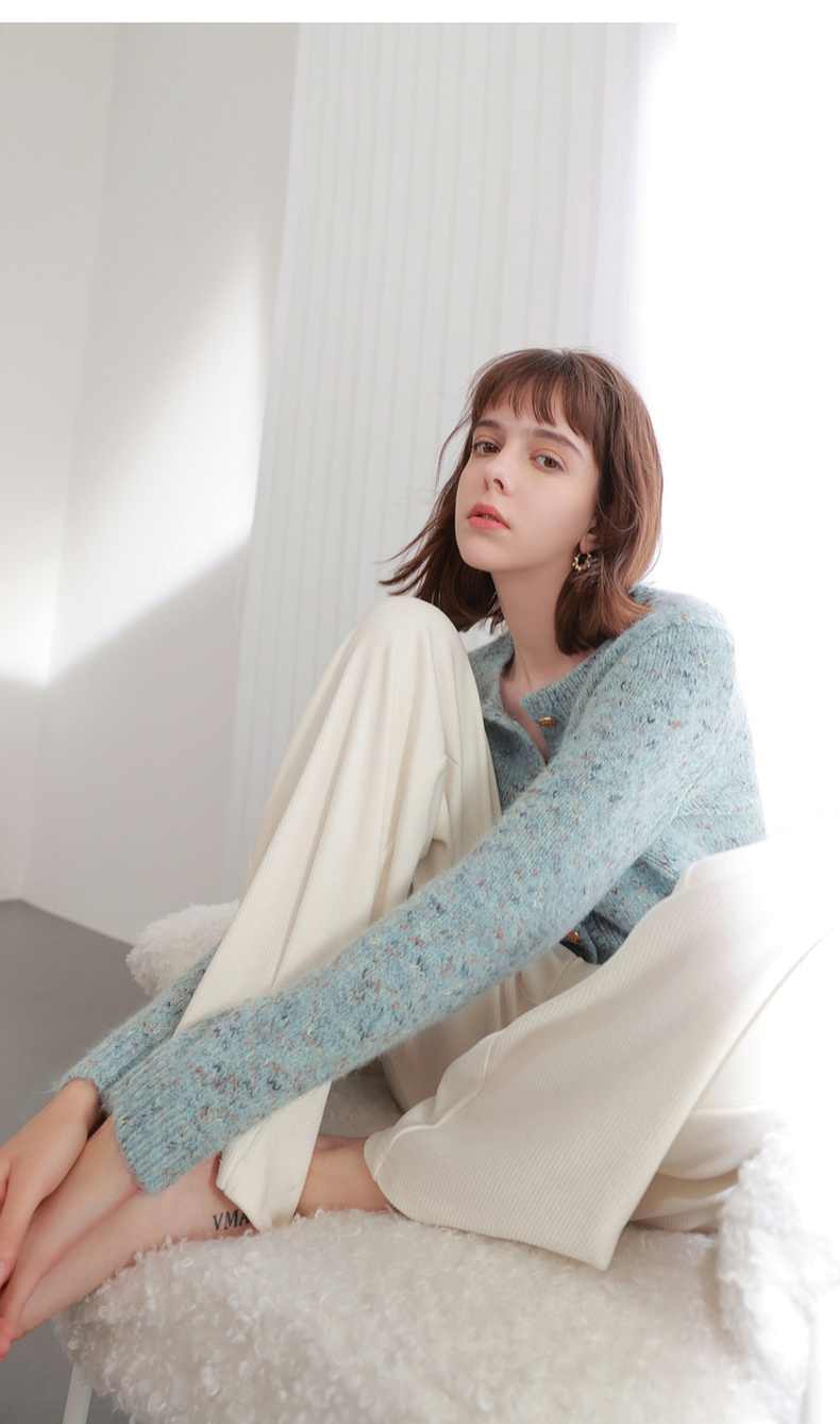 三彩2025冬季新款奶油花纱针织衫香风圆领毛衣开衫短款毛衫M
