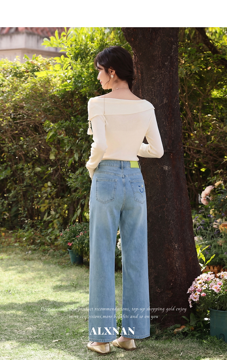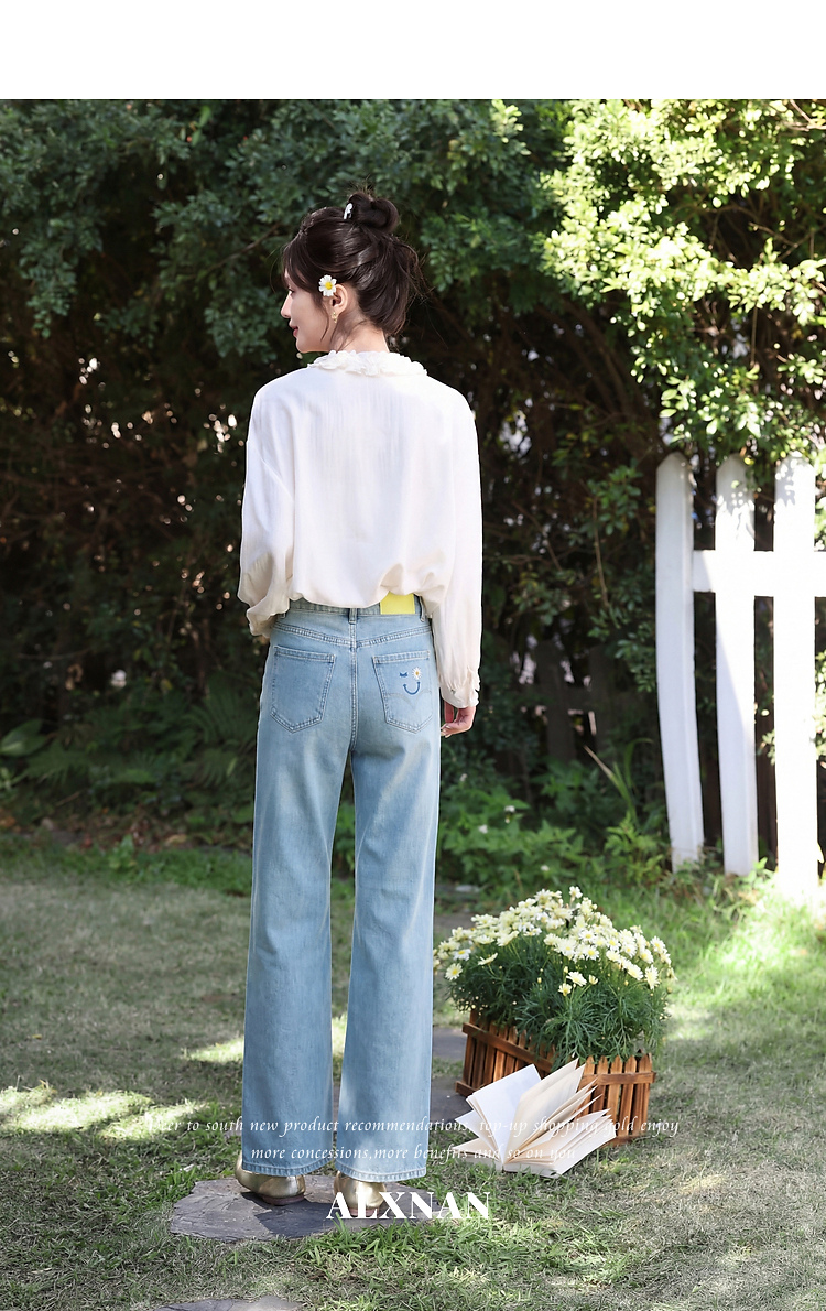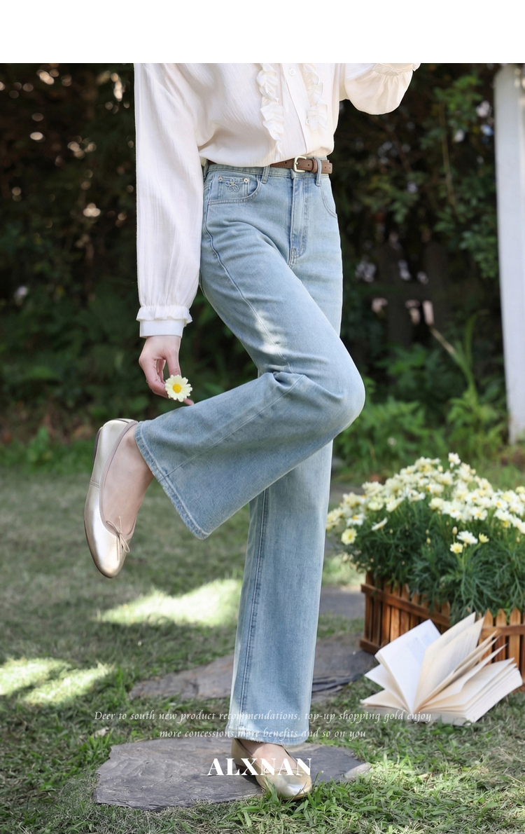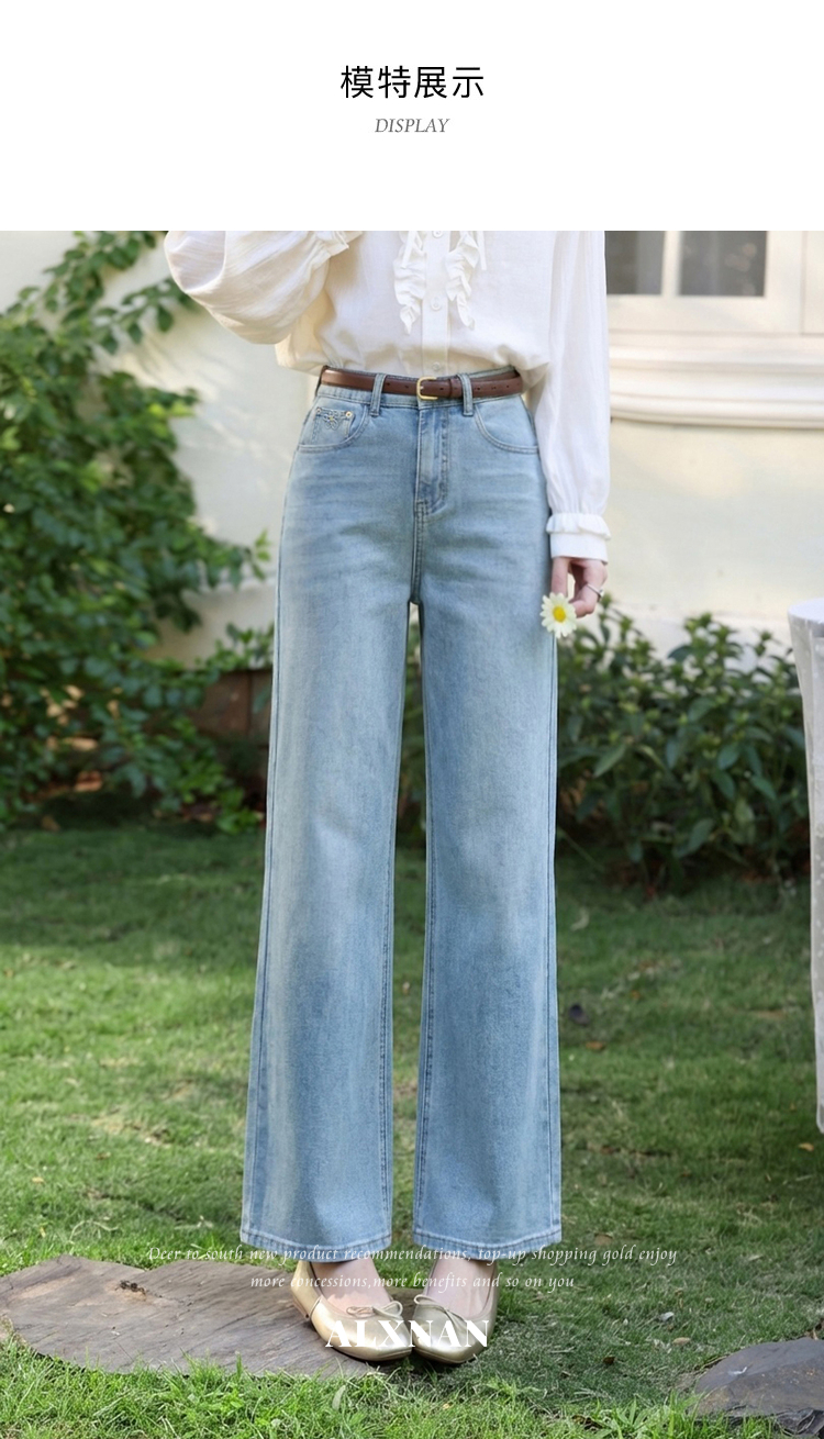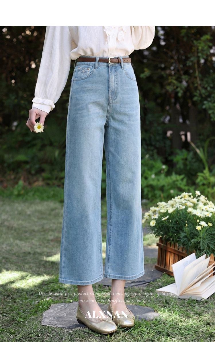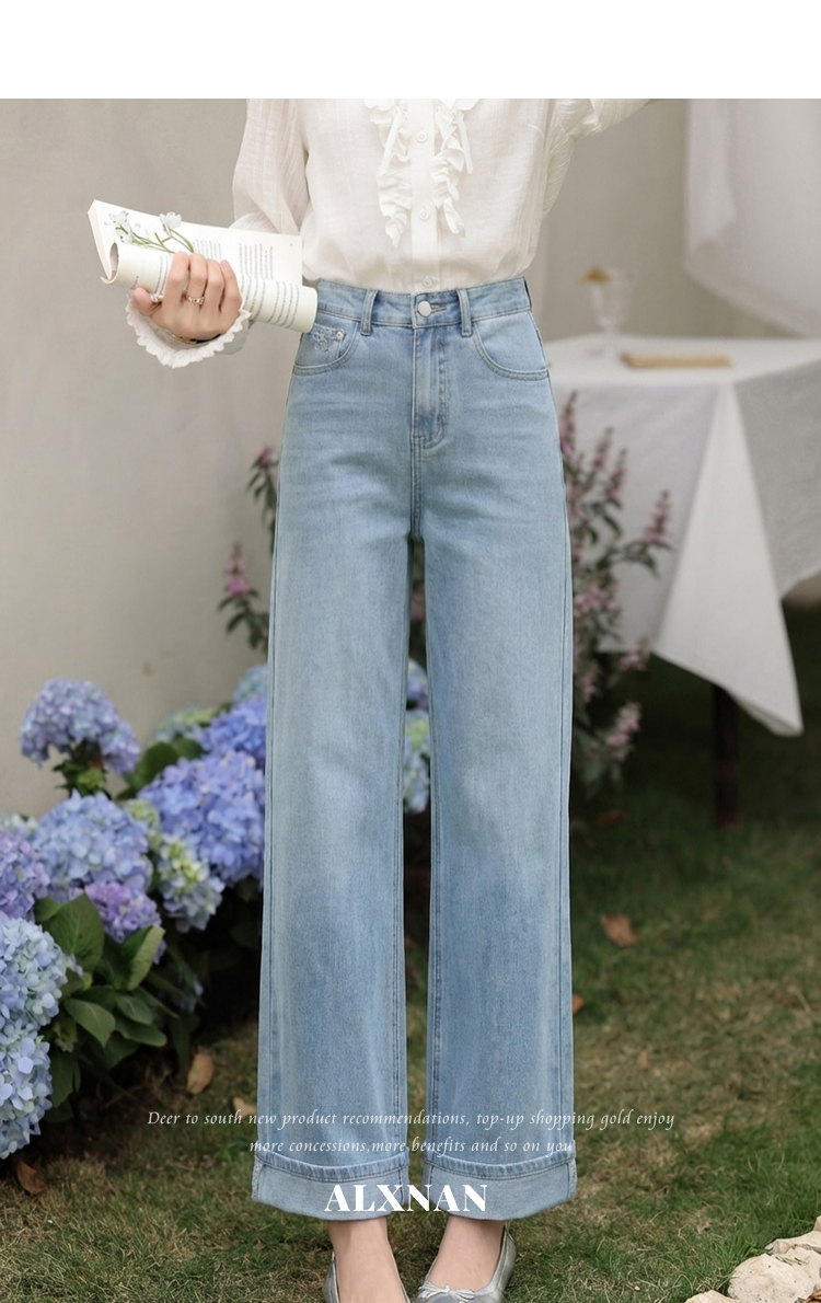 鹿向南「星序丹宁」简约蓝色显瘦直筒牛仔裤女夏季新款小个子长裤