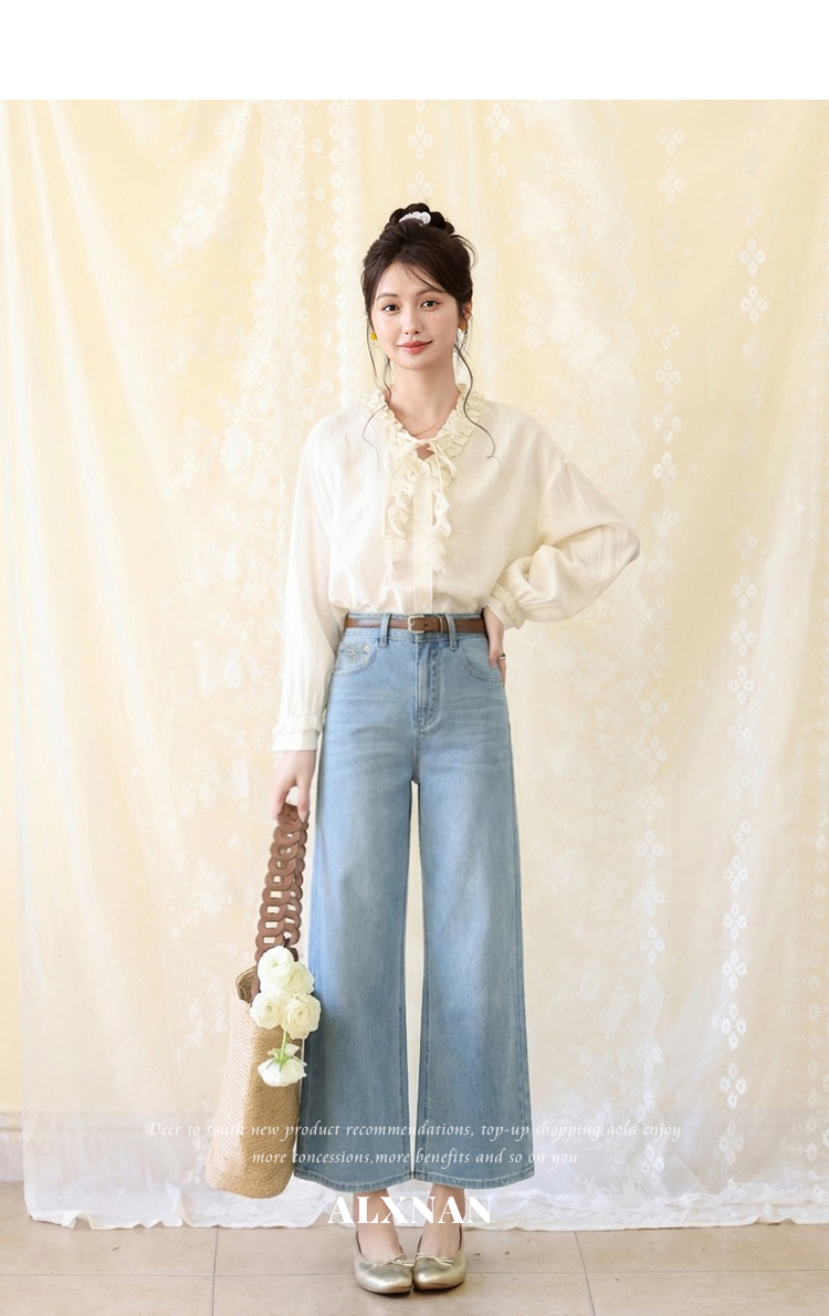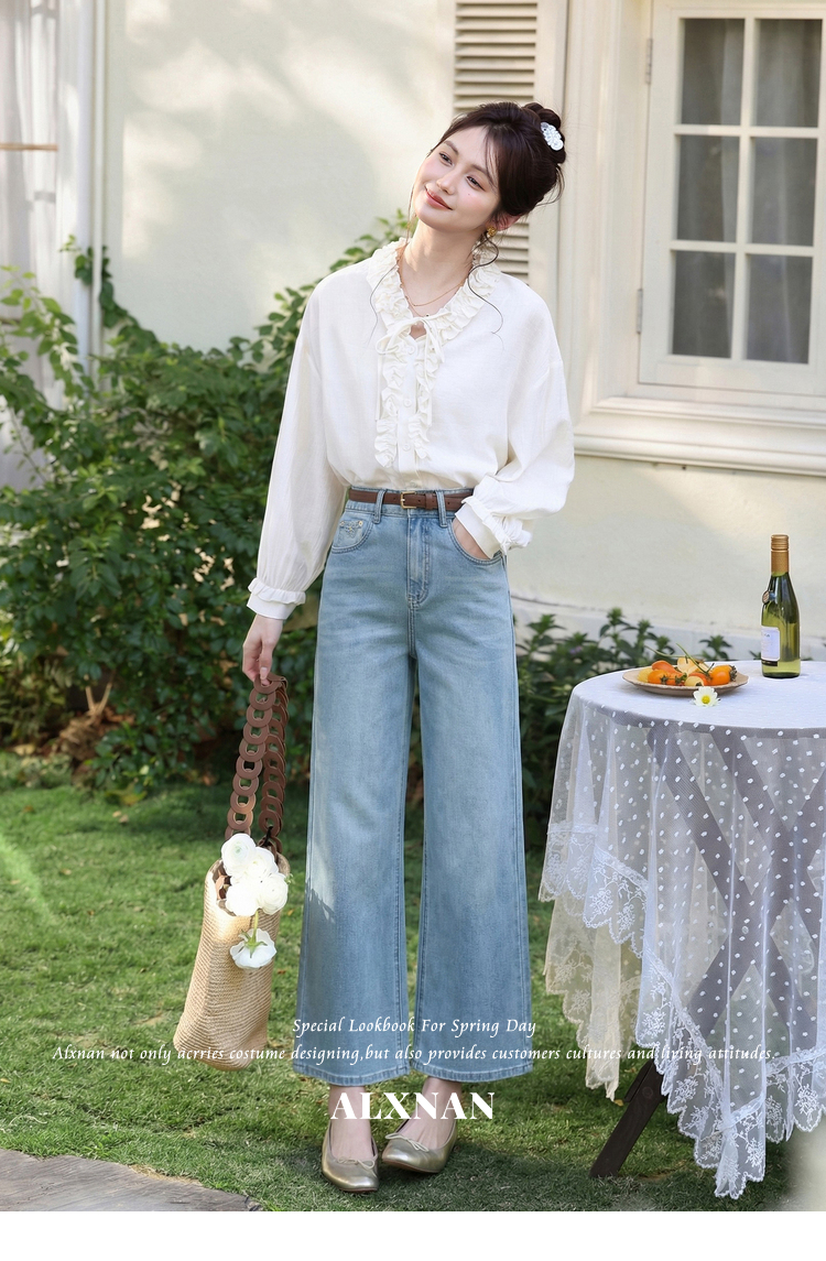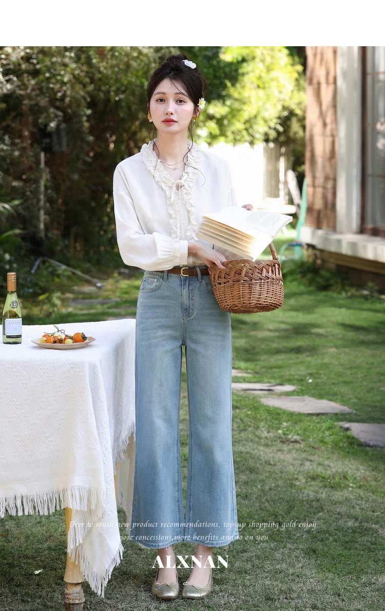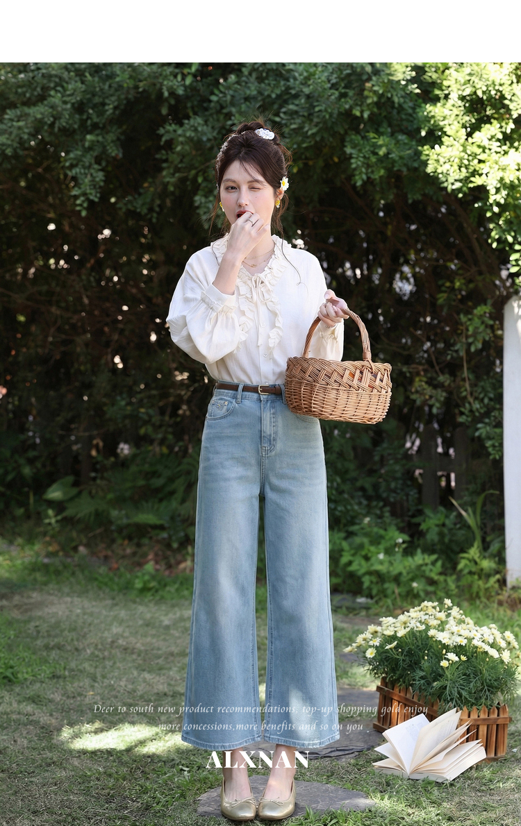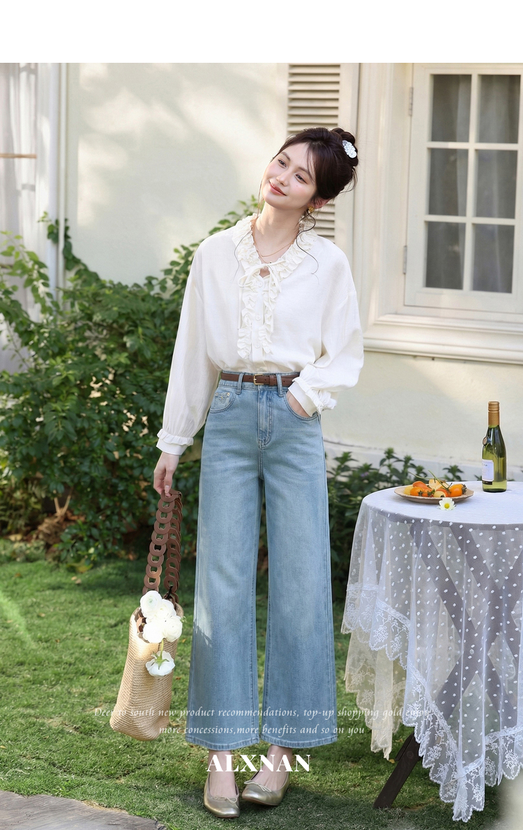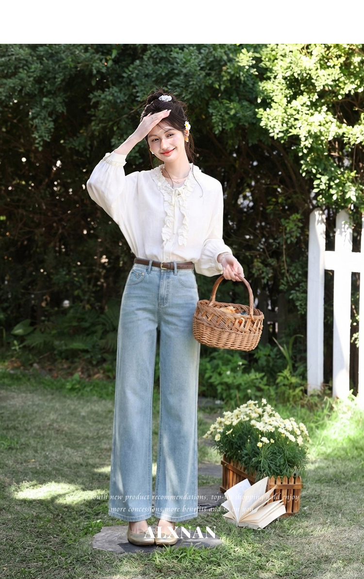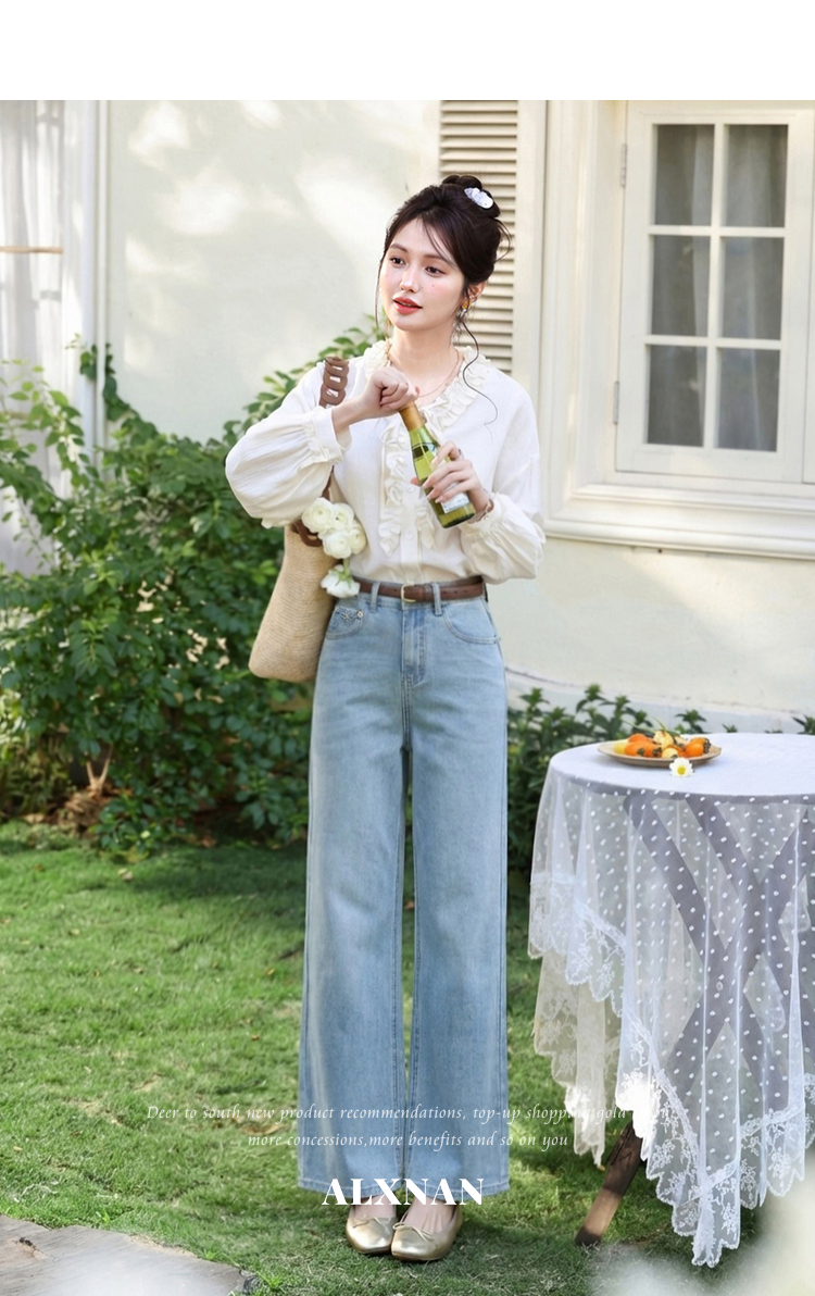 鹿向南「星序丹宁」简约蓝色显瘦直筒牛仔裤女夏季新款小个子长裤
