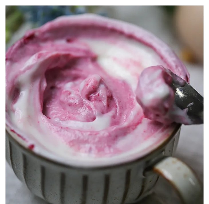 【甜菜根酸奶】直接将甜菜根粉加入到酸奶中,搅拌均匀,直接饮用即可。