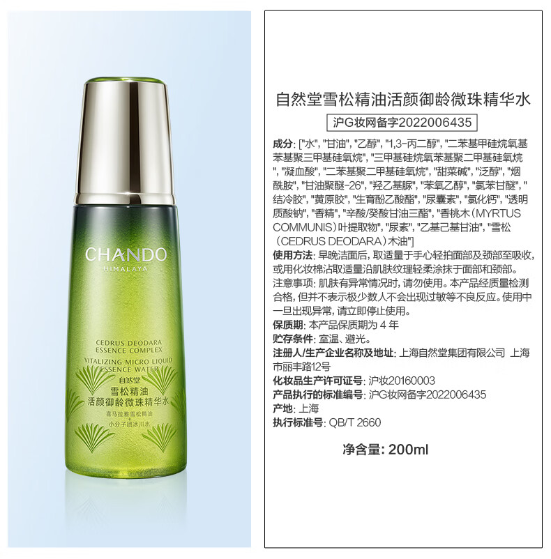 自然堂雪松精油活颜御龄微珠精华水200mL