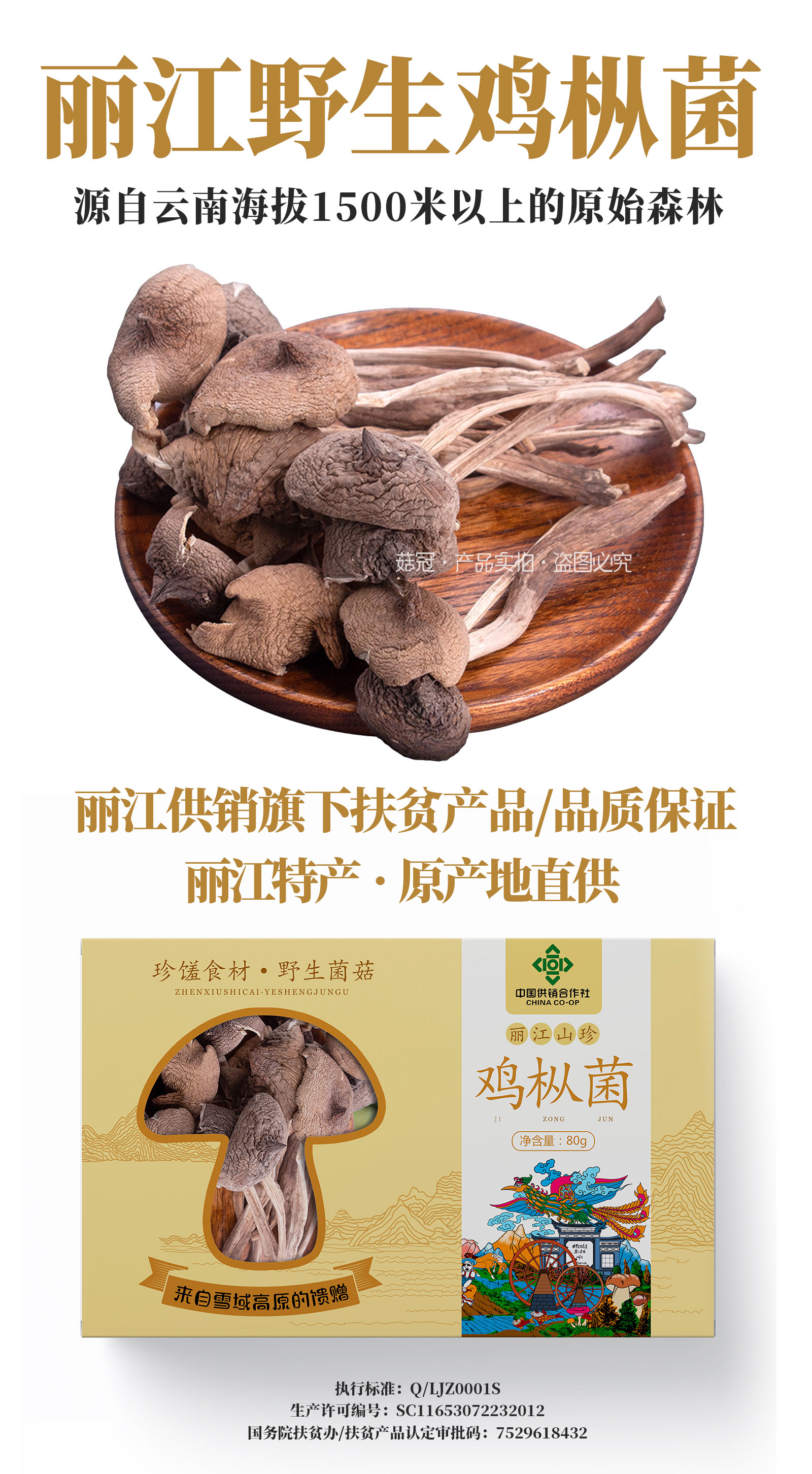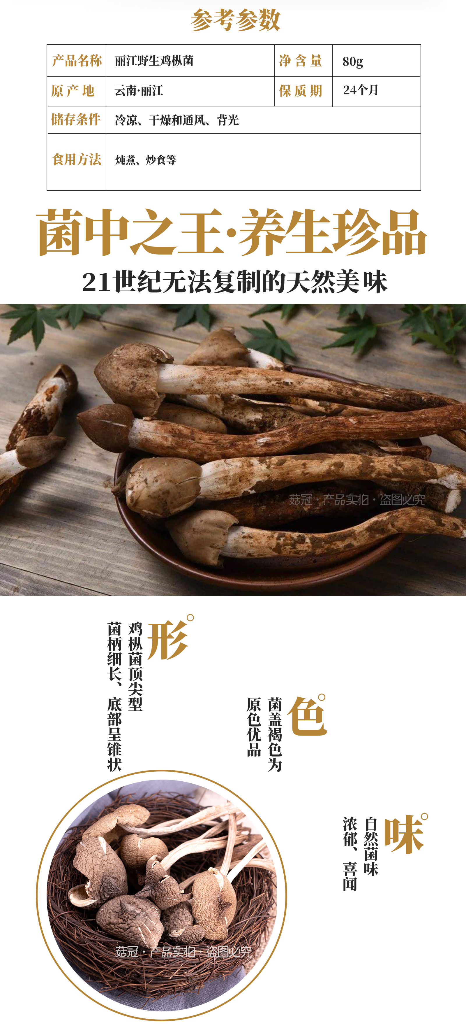 【菇冠】云南野生鸡枞菌干 80g 食用营养菌菇煲汤食材特产烘干