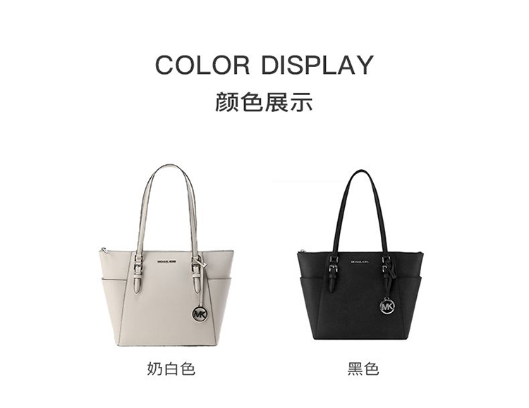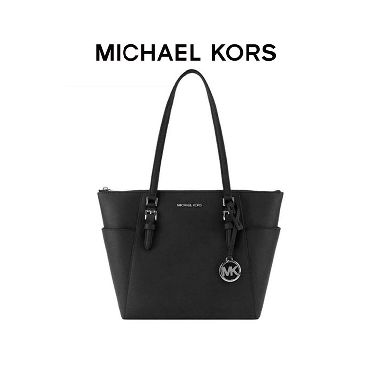【品牌】MK Charlotte 大号Logo挂饰单肩手提托特女包黑色