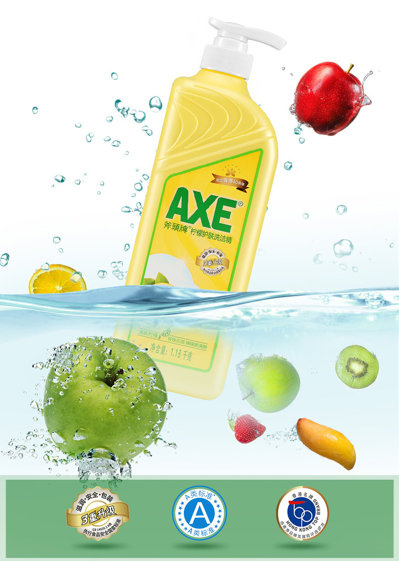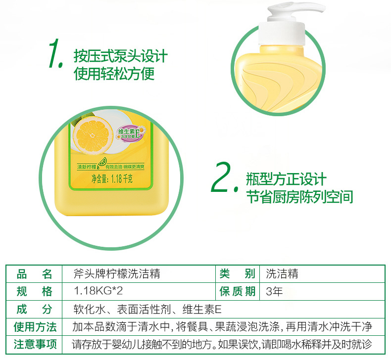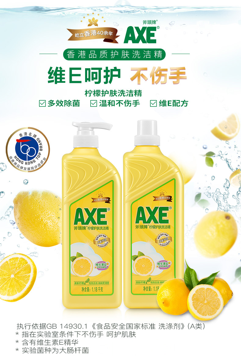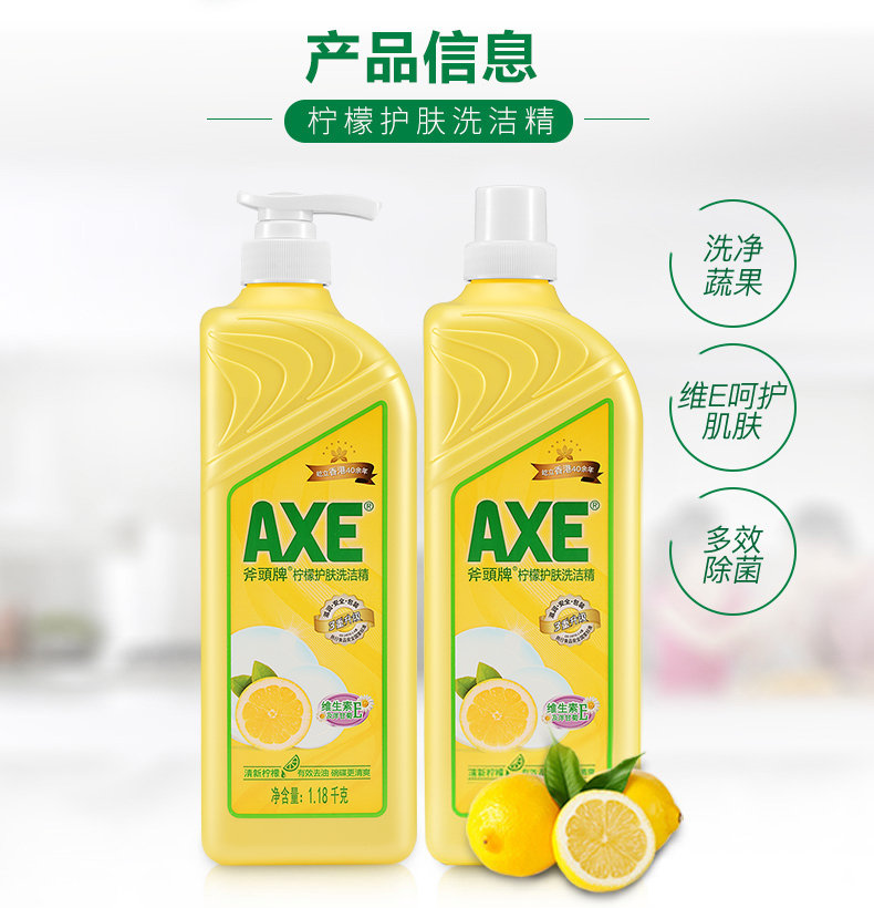 【斧头牌】AXE洗洁精维E护肤1.01kg*2清新柠檬可洗果蔬洗碗厨房清洁