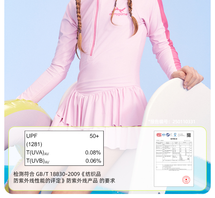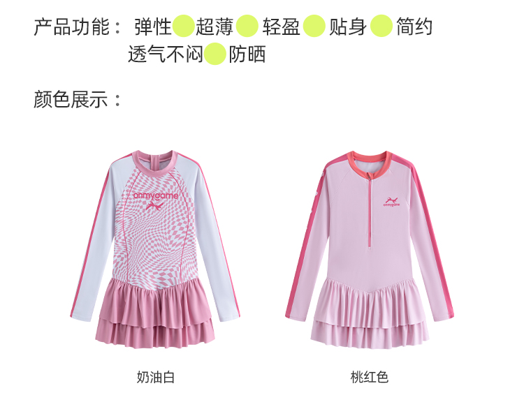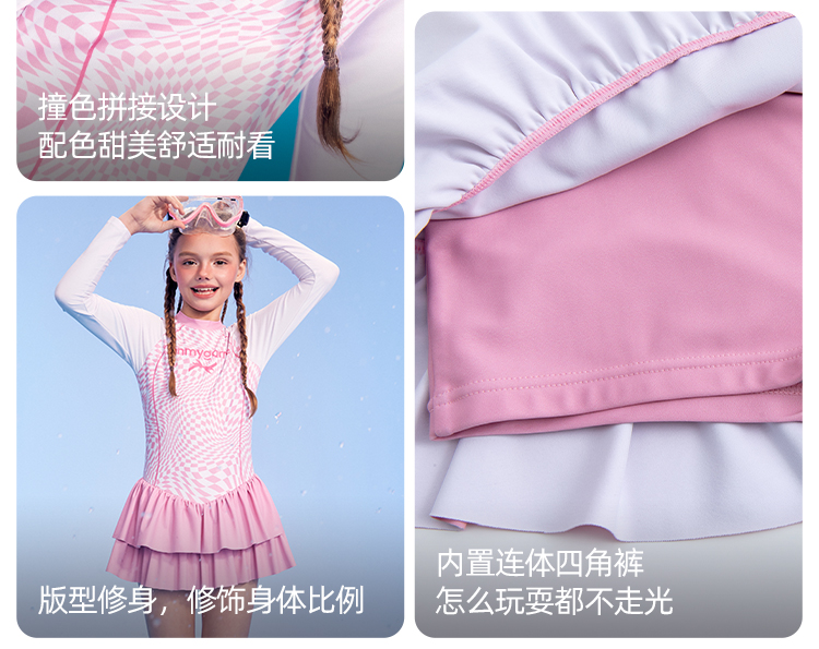 onmygame女童抗菌A类连体泳衣夏季水上运动防晒泳裙