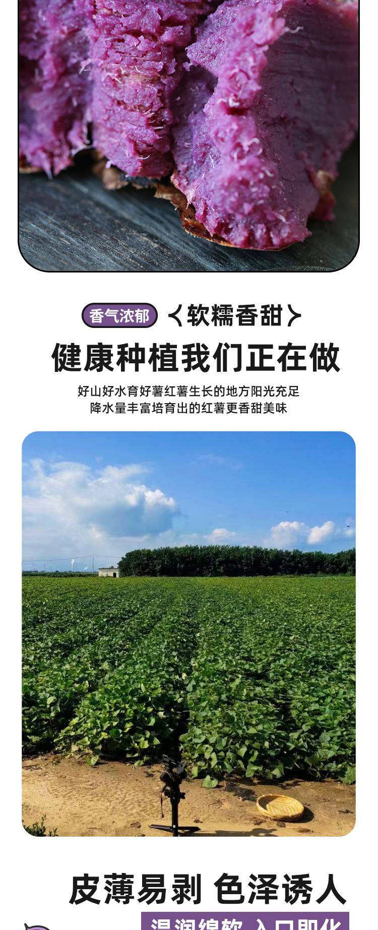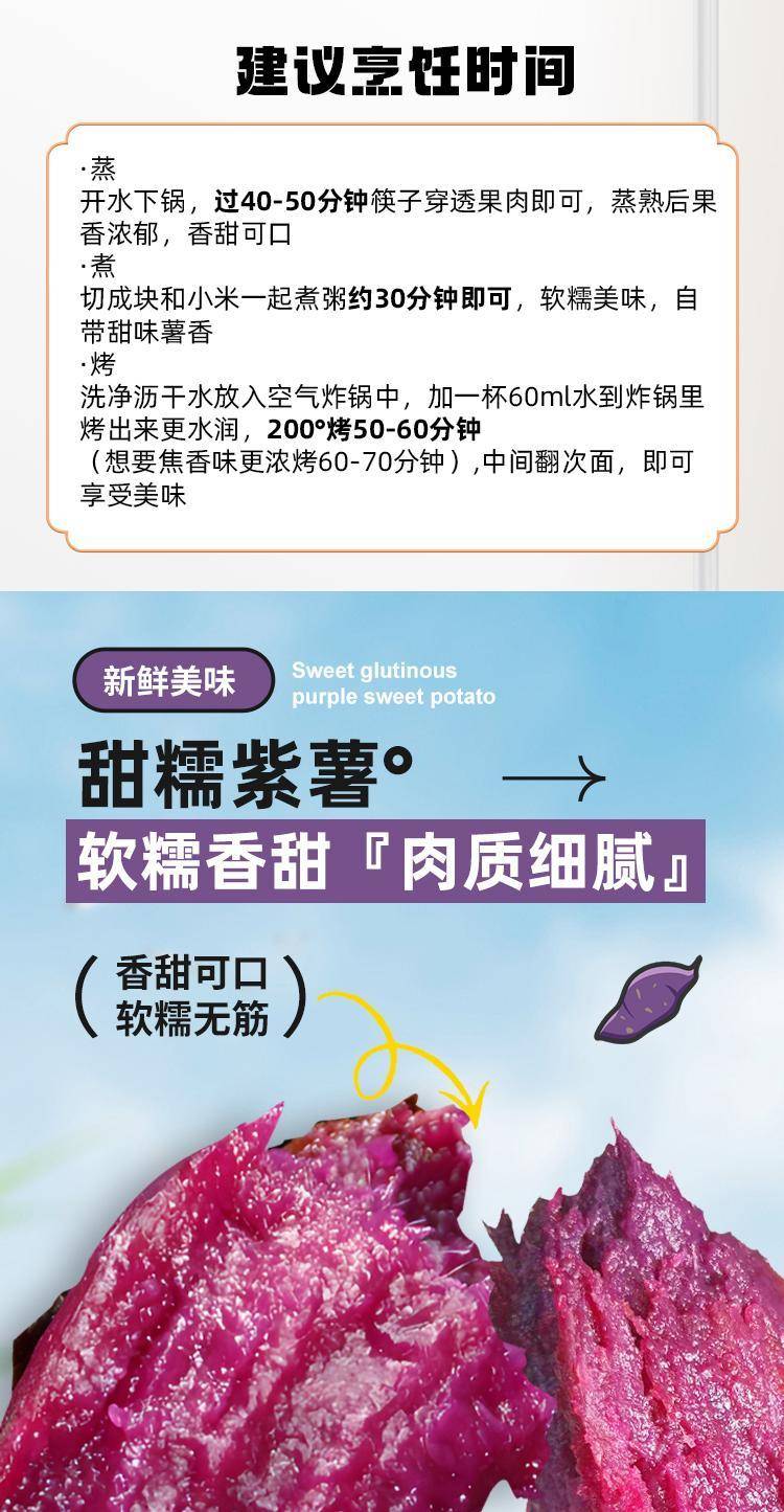 【口感一绝 · 冰淇淋般沙糯!】 真的不干不噎!不卡喉! 蒸熟后糯叽叽、沙润润,入口无丝无筋,就像在吃紫薯冰淇淋! 甜度适中自然,带淡淡薯香,宝宝、老人都能轻松享用~