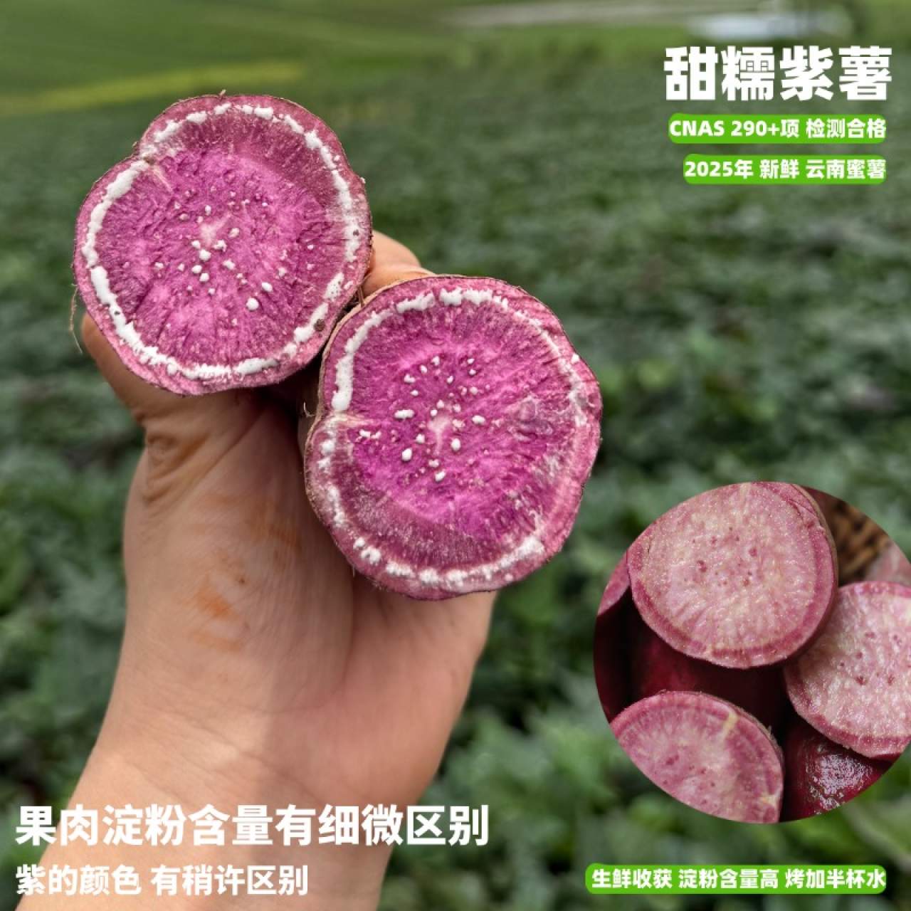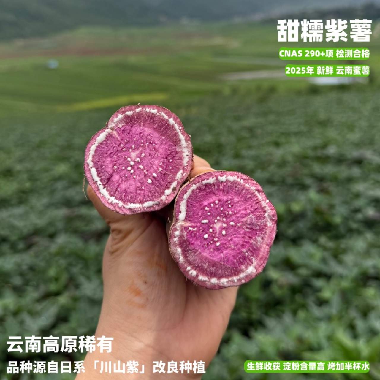 【品种珍稀 · 源自日系“川山紫”】 这不是普通紫薯!品种源自日本优质紫薯「川山紫」,如今在云南高原1800米海拔纯净土地精心培育! 昼夜温差超10℃+超长日照,天然环境加持,让每一口都凝聚自然甜糯精华!
