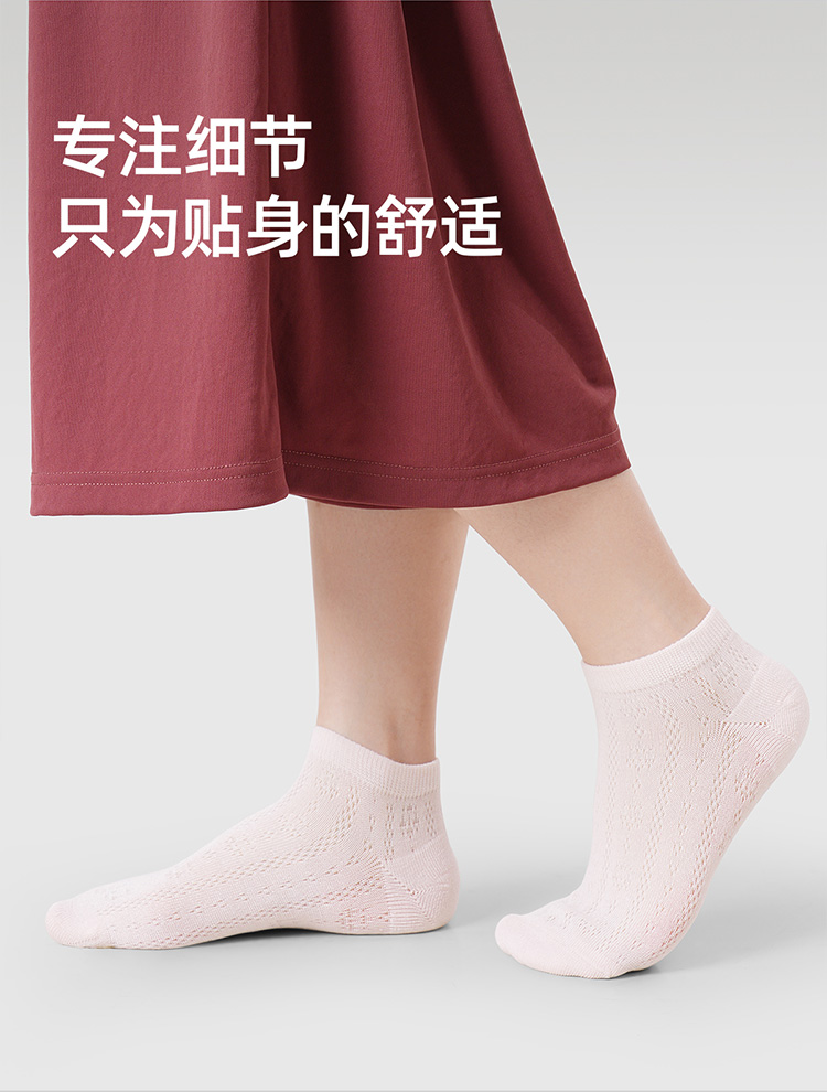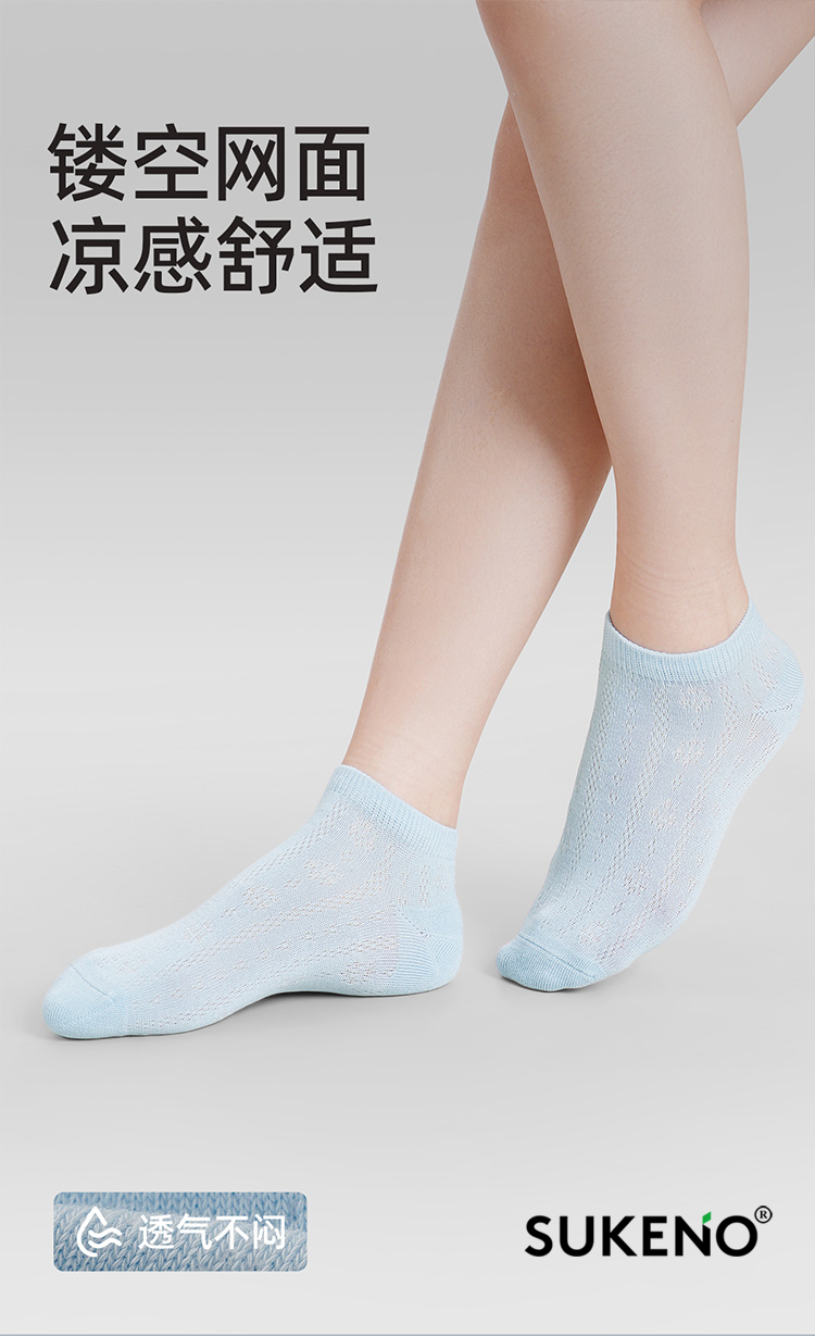 SUKENO夏季凉感舒适船袜女式短袜镂空网面袜子