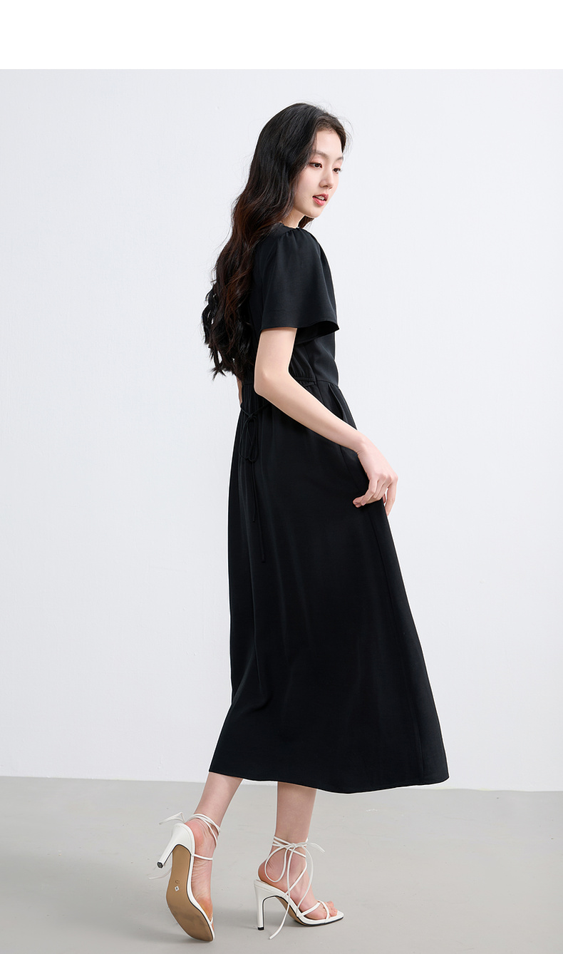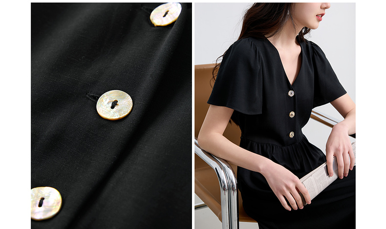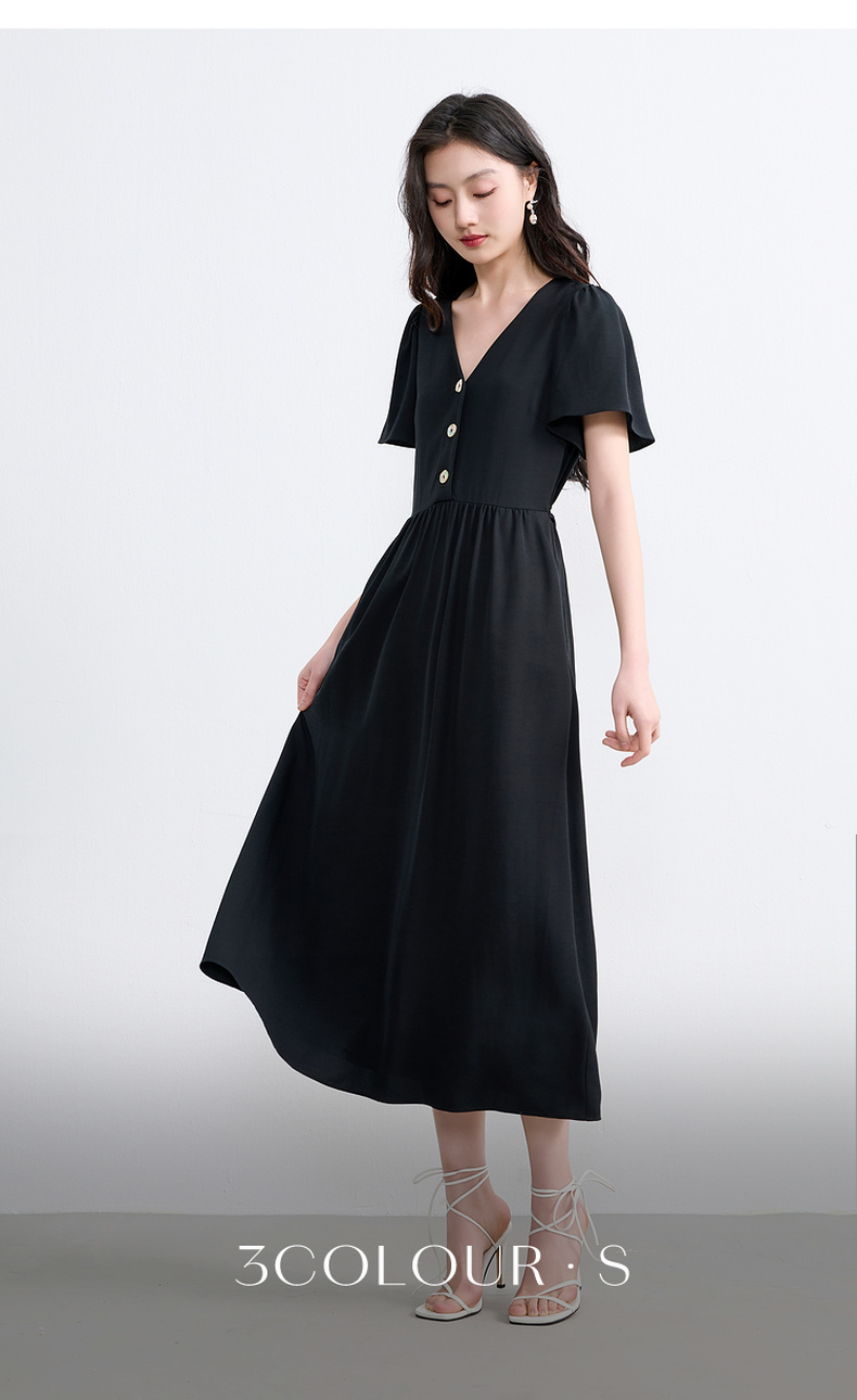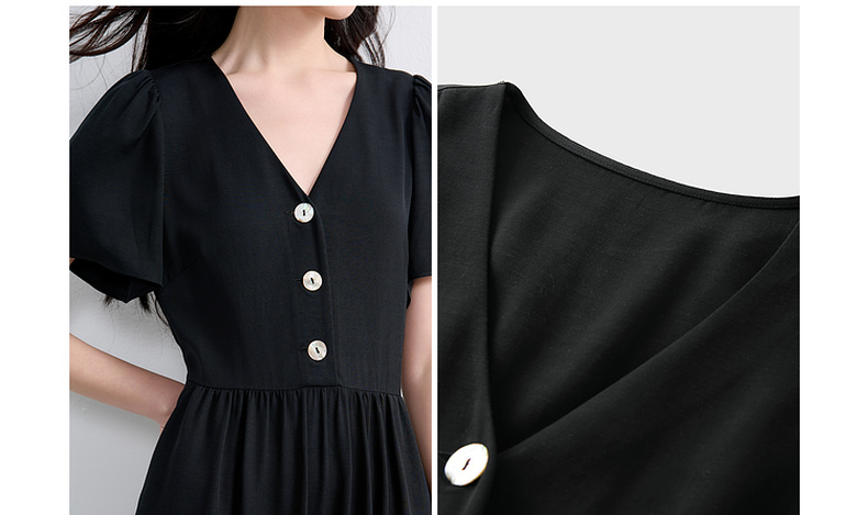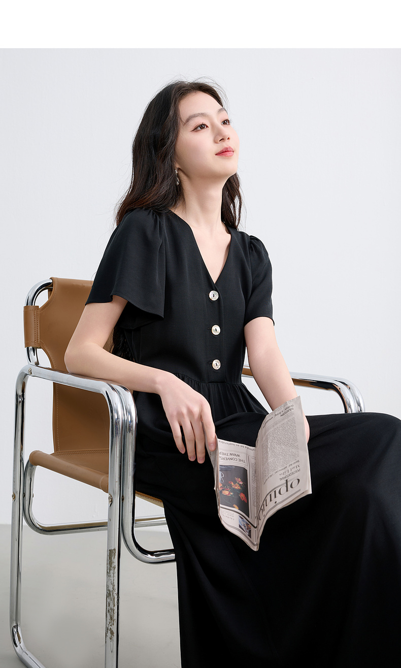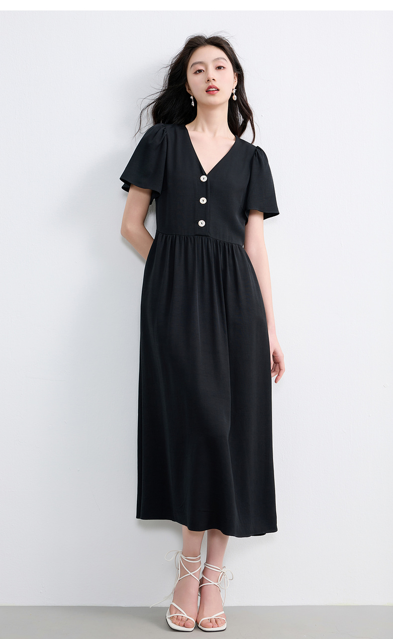 【莱赛尔+亚麻】三彩2025夏季新款连衣裙V领收腰A字裙长裙优雅气质S