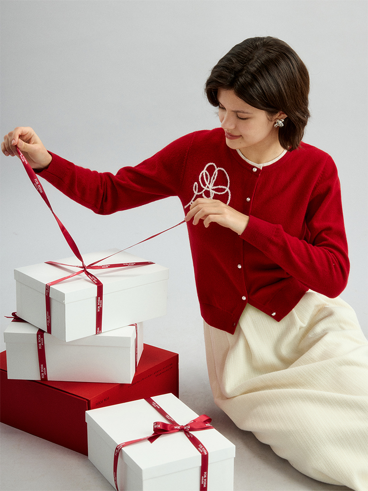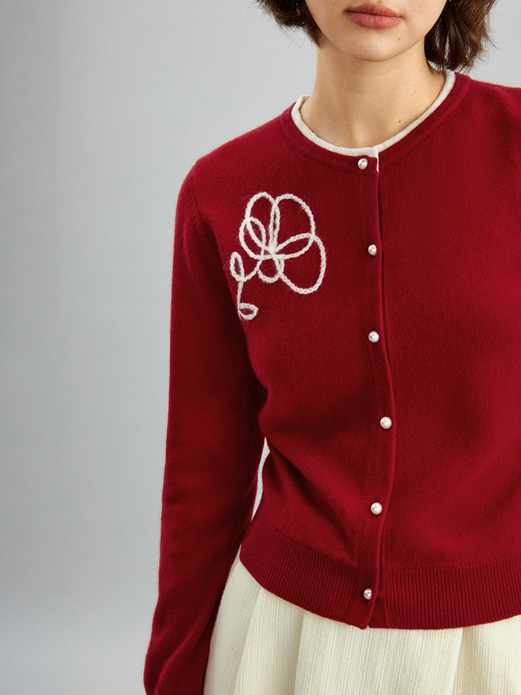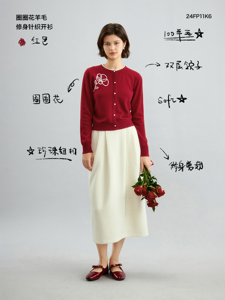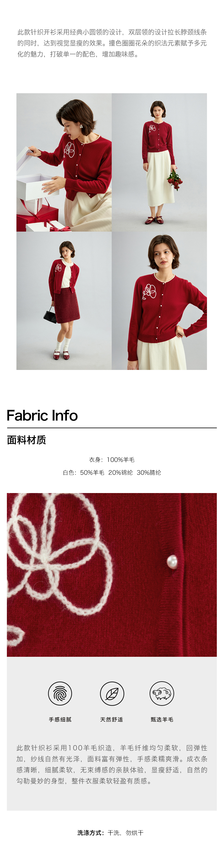 ForPoem 现货 24/FW原创设计圈圈花羊毛修身显瘦针织开衫