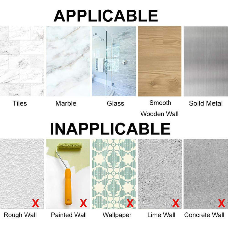 【★安装须知★】墙面必须平整干燥。不适合贴有墙纸或涂漆的墙面,否则可能会导致墙纸或漆面脱落。请从中心向四周挤压排出空气,确保粘钩完全贴合墙面。