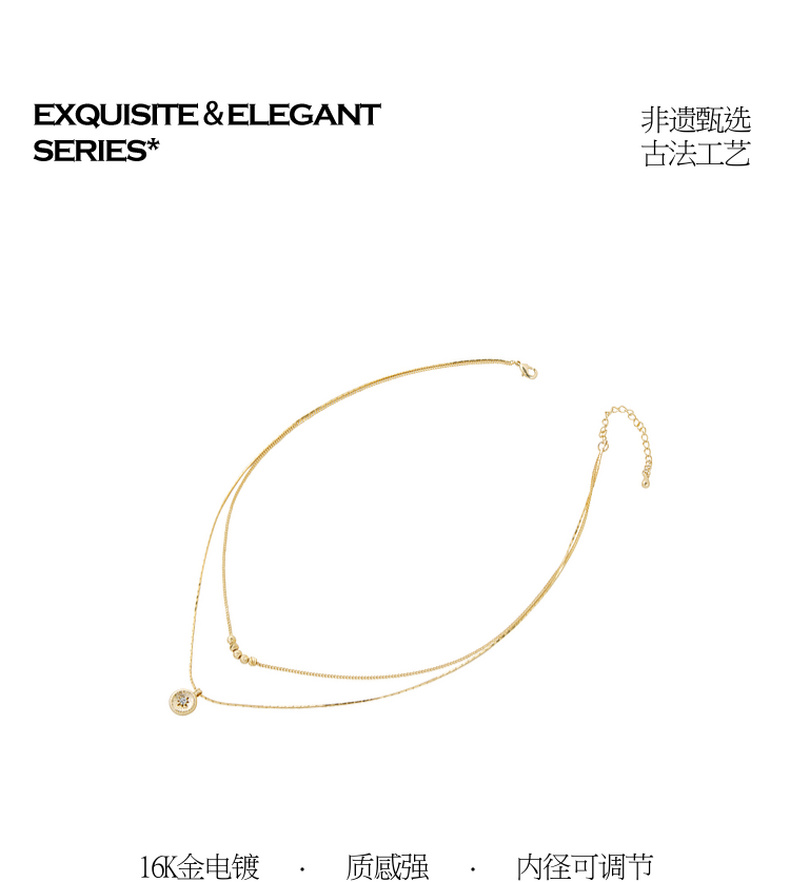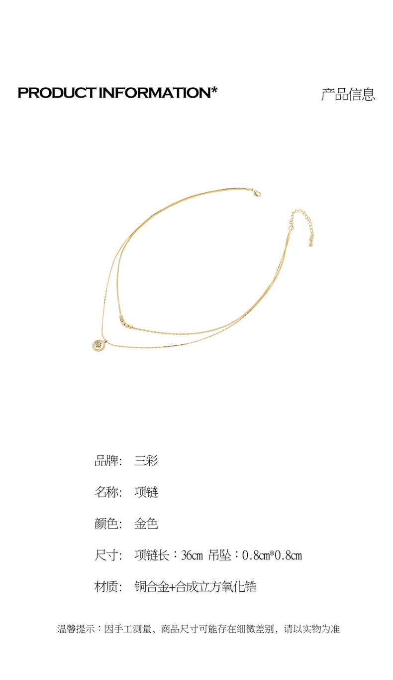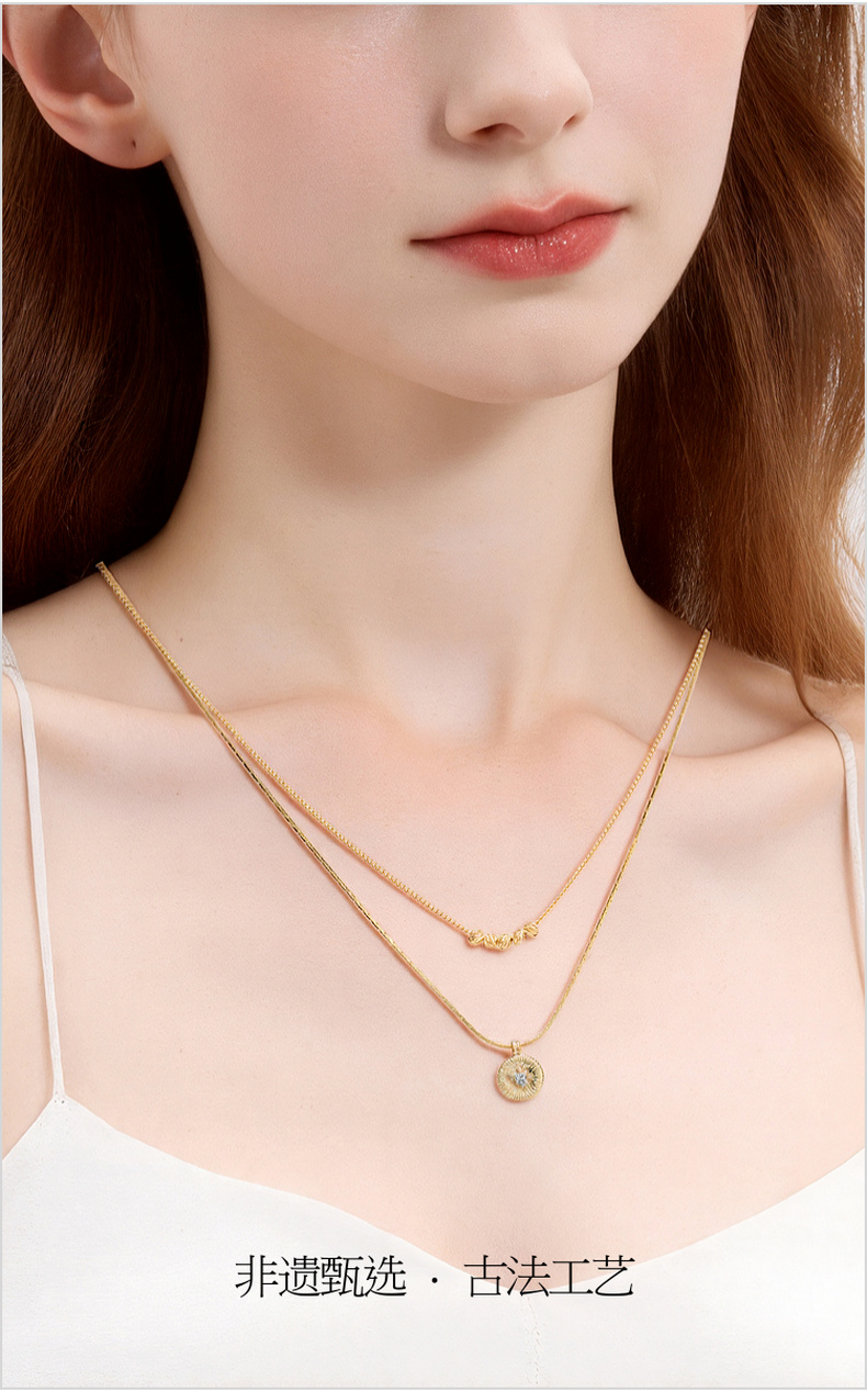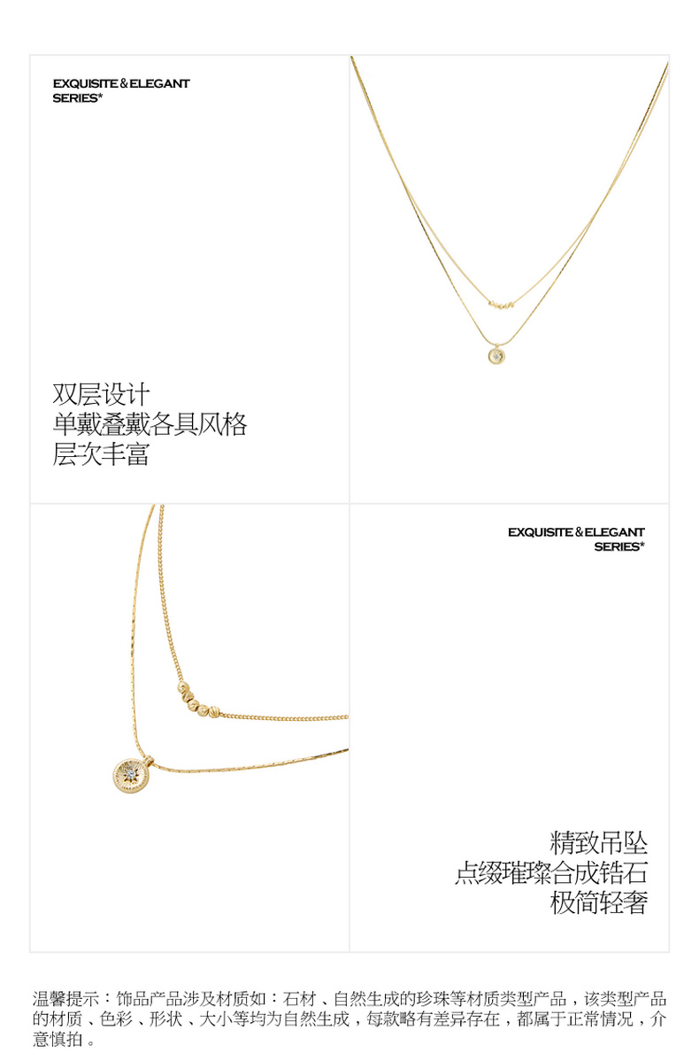 三彩2026新款轻奢风双层叠戴钻饰圆盘吊坠项链小众设计层次感女