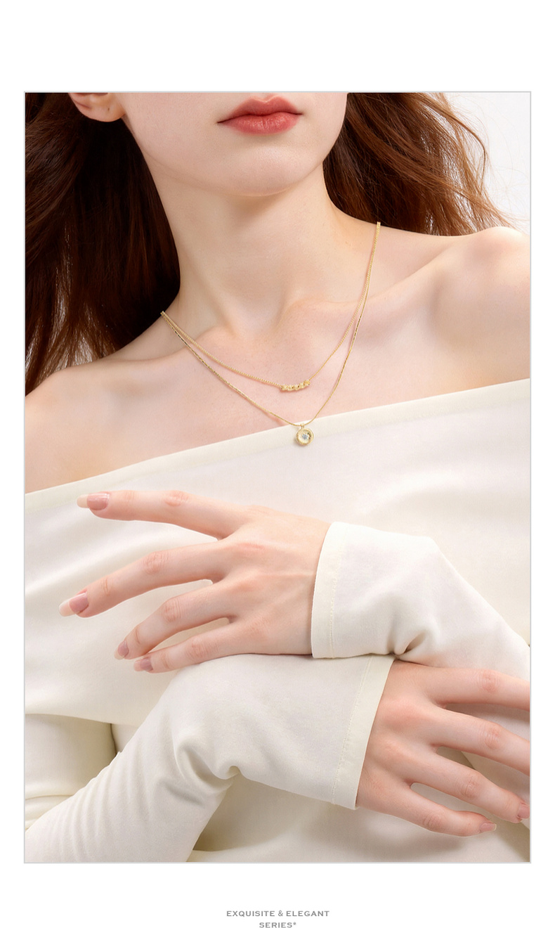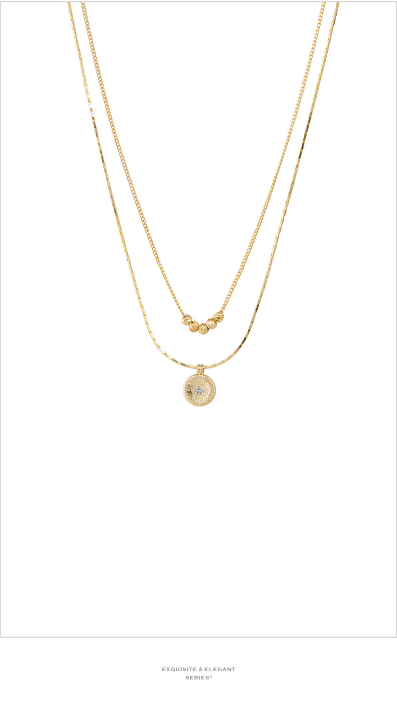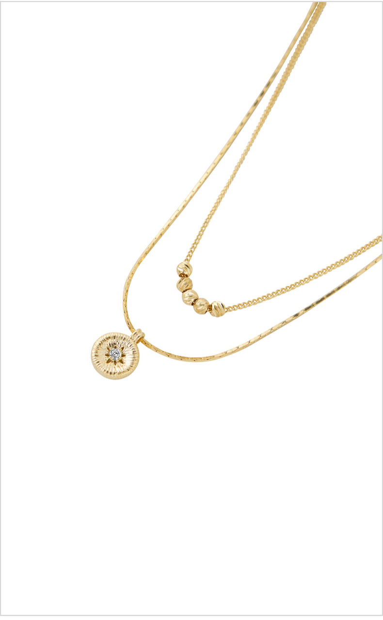 三彩2026新款轻奢风双层叠戴钻饰圆盘吊坠项链小众设计层次感女