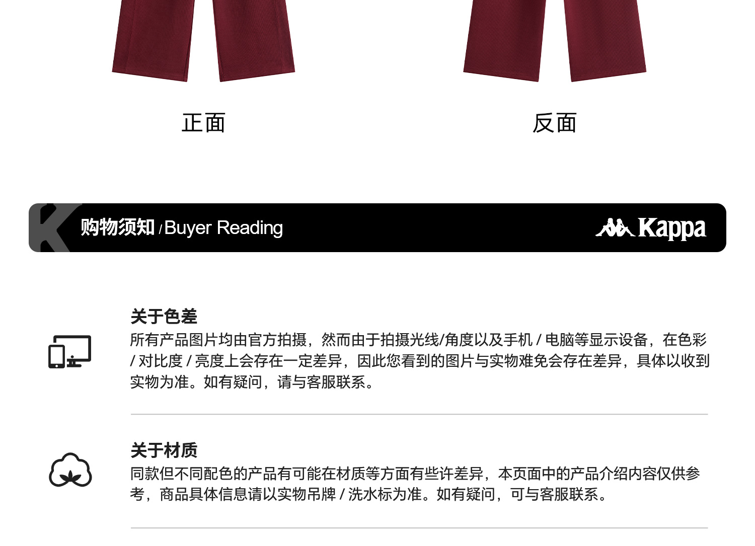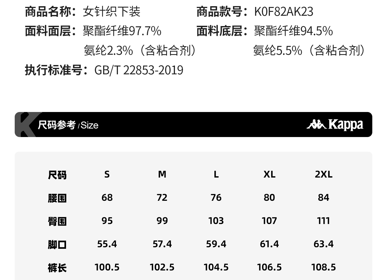 Kappa 25年秋季新款 直筒宽松休闲针织长裤 女K0F82AK23