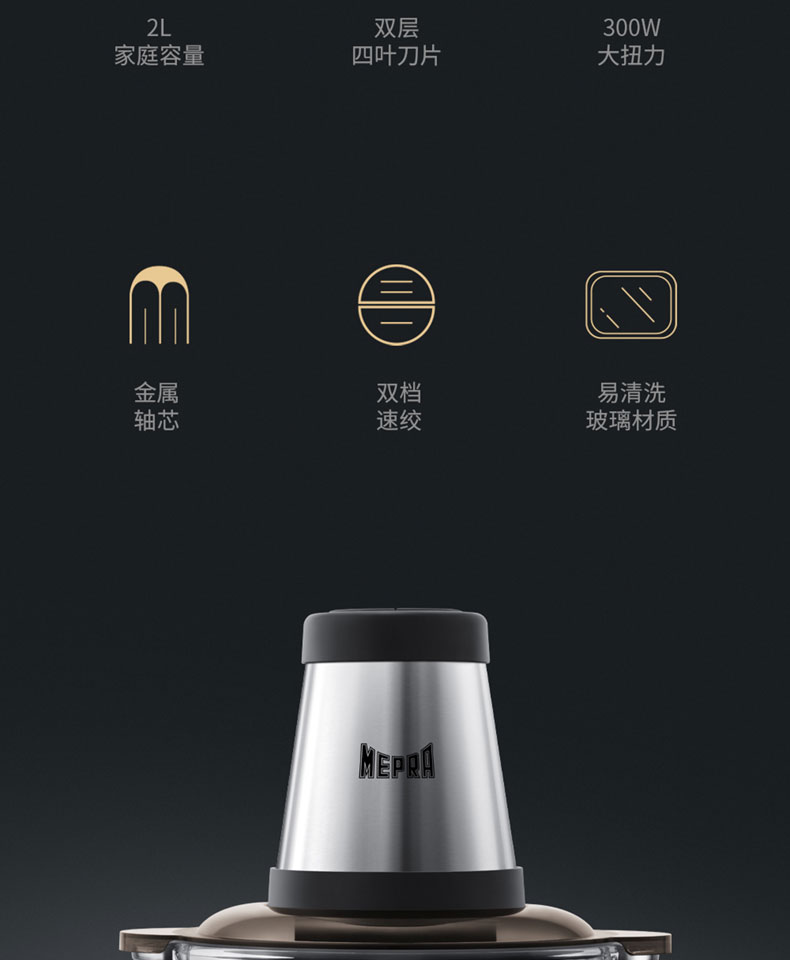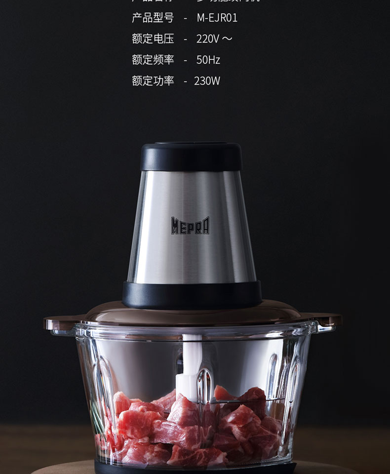 MEPRA 家用多功能绞肉机 粉碎机 捣蒜机 食物处理机 M-EJR01