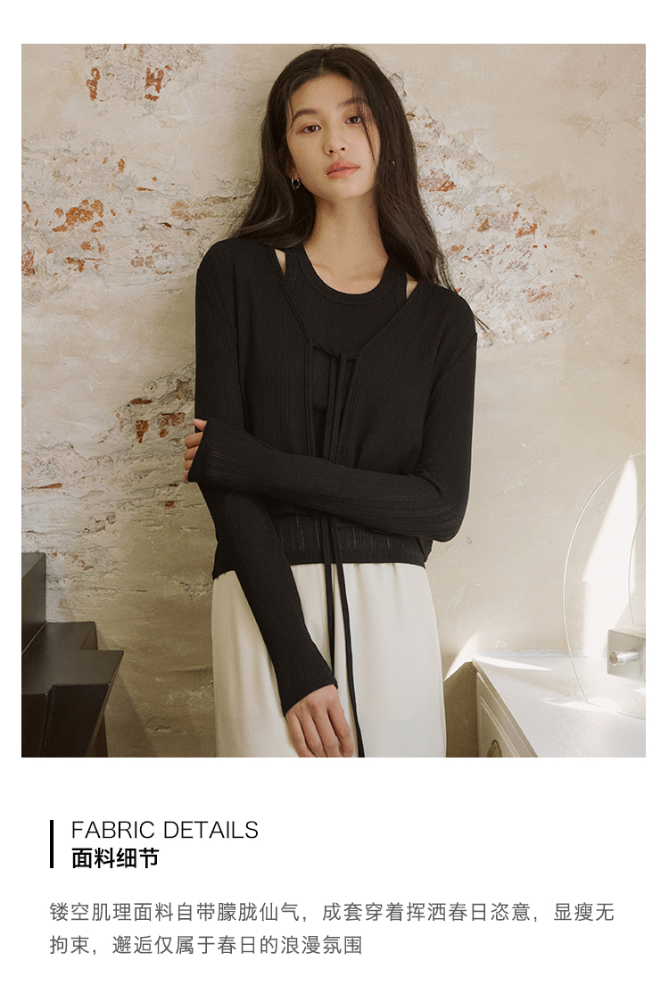 ForPoem 现货 24/SS原创设计慵懒镂空显瘦针织背心空调开衫两件套套装