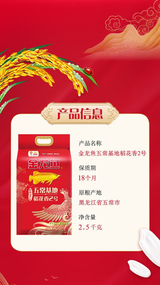 金龙鱼牤牛河产区五常大米五常定制2.5kg