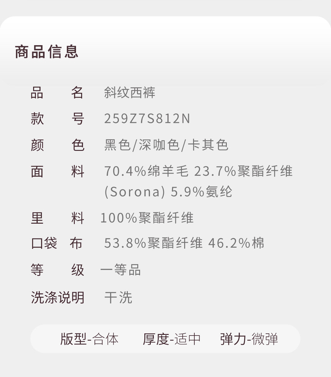 【大师13号】70羊毛索罗娜斜纹羊毛西裤259Z7S812N[门店专款]