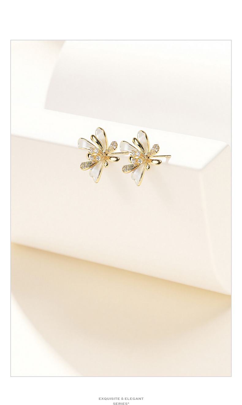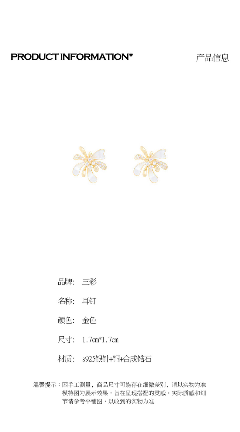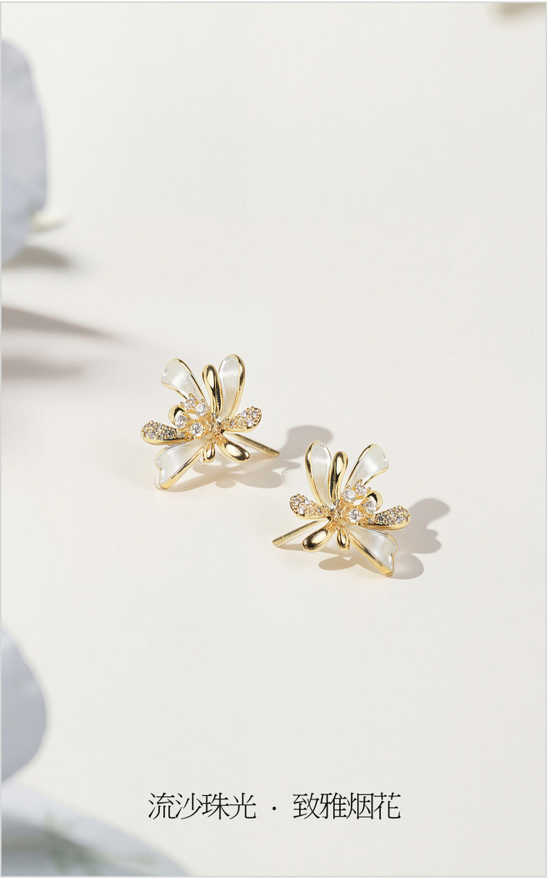 三彩2026新款法式轻奢画漆立体花瓣耳钉S925银针烟花通勤约会