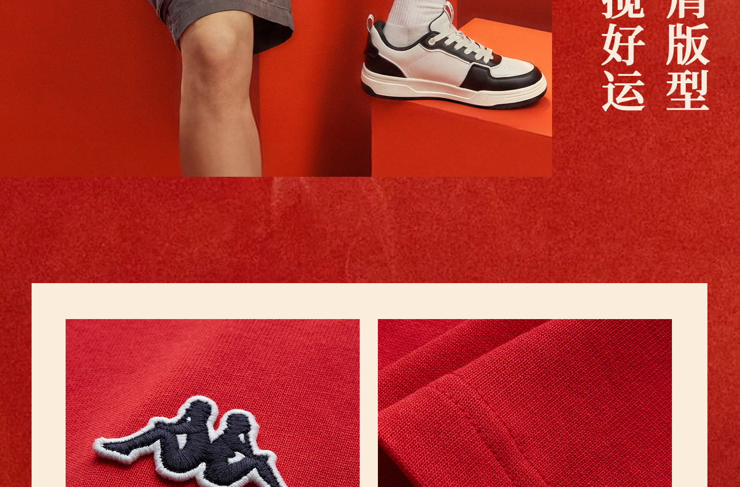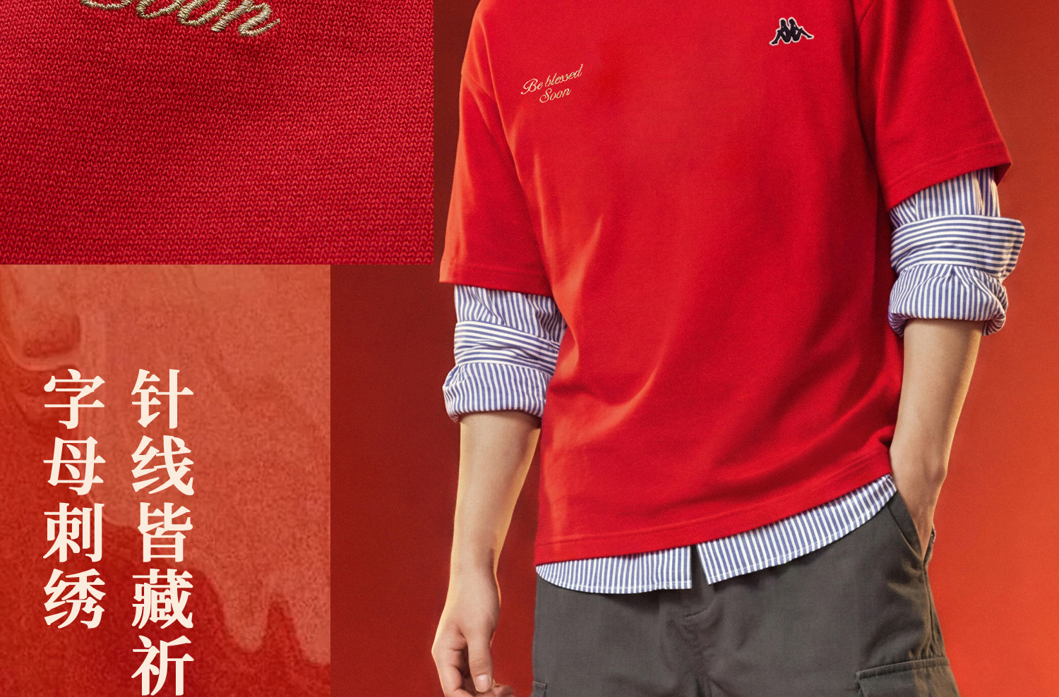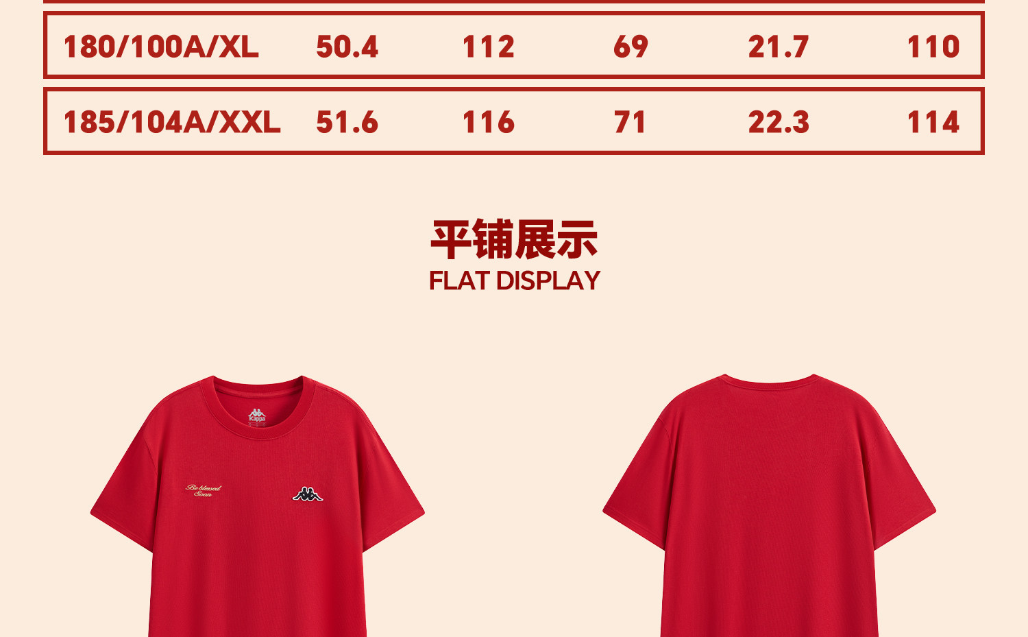 Kappa 新年款纯棉运动t恤男新款红色休闲短袖训练上衣女K0G12TD06